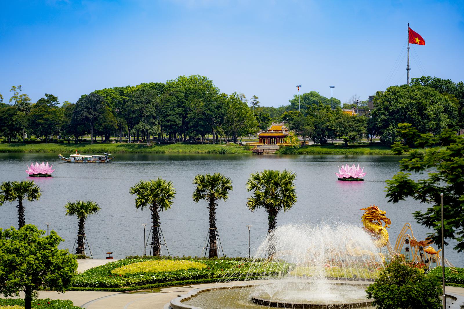 Các trục đường chính ở Huế được trang trí rất chỉnh chu.