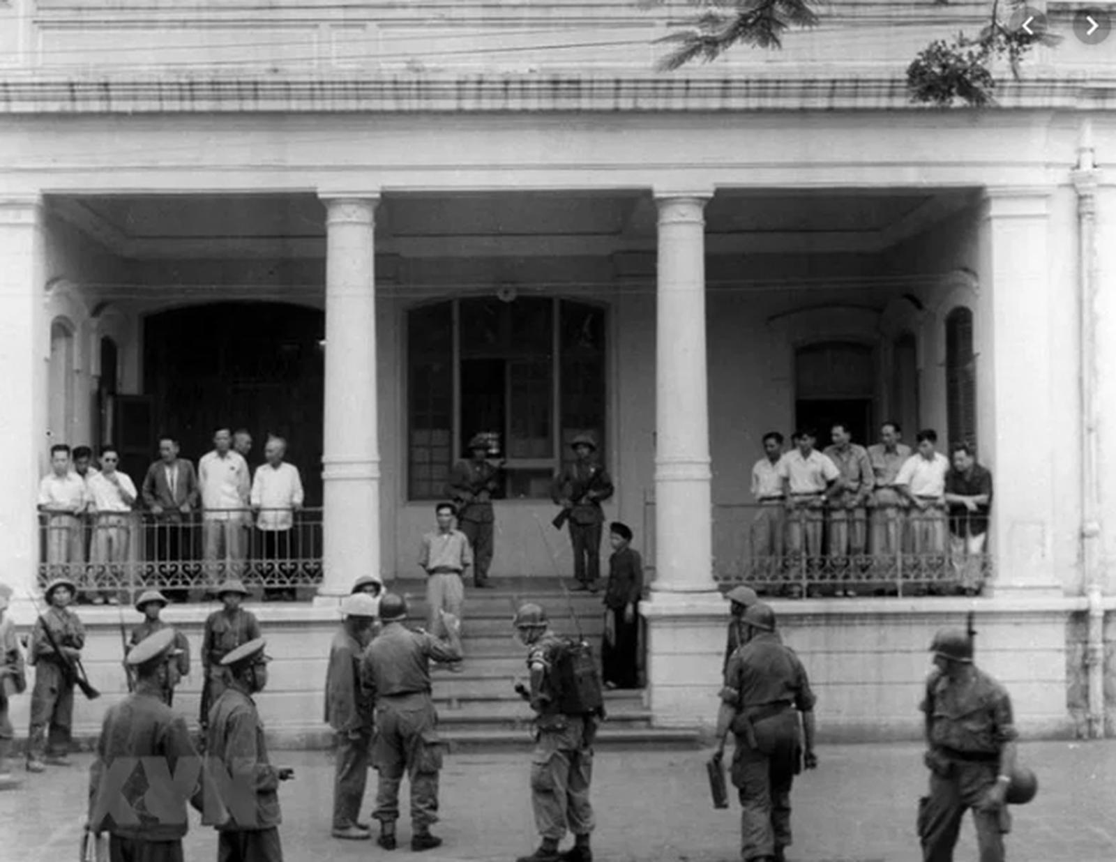 Bộ đội Việt minh tiếp quản Toà nhà Hành chính của Pháp