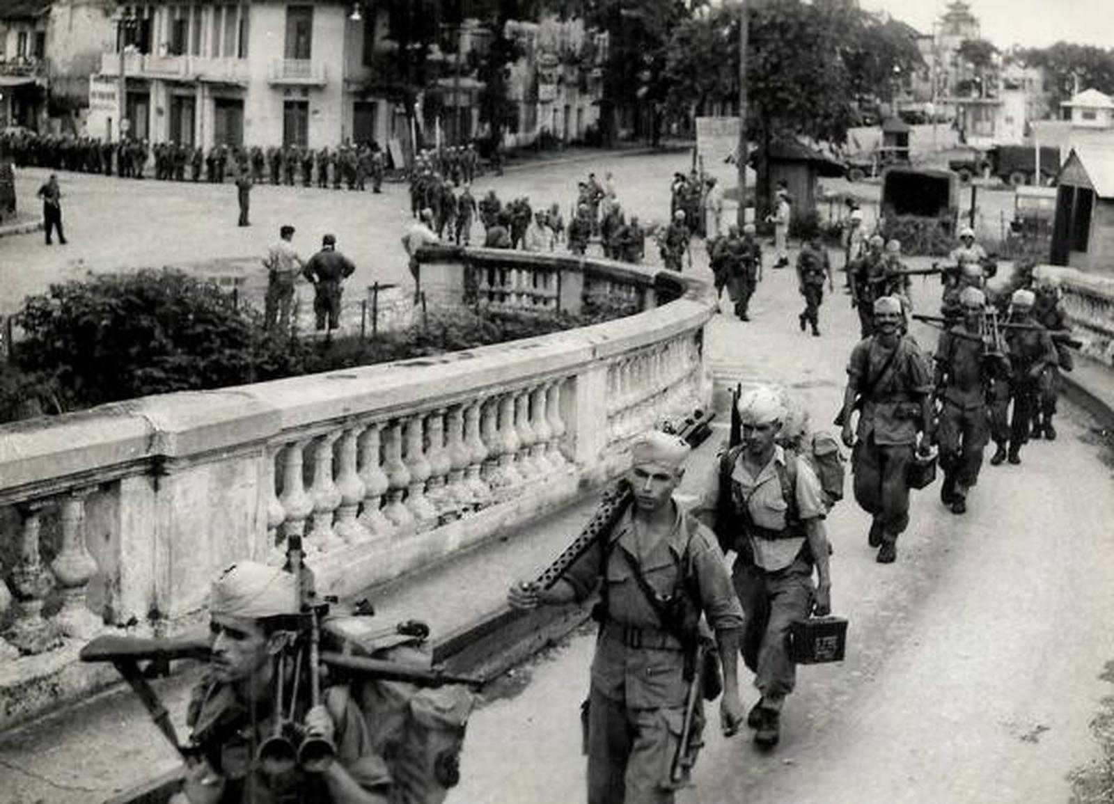 Những người lính viễn chinh Pháp cuối cùng trên cầu Long Biên. Ảnh: TL