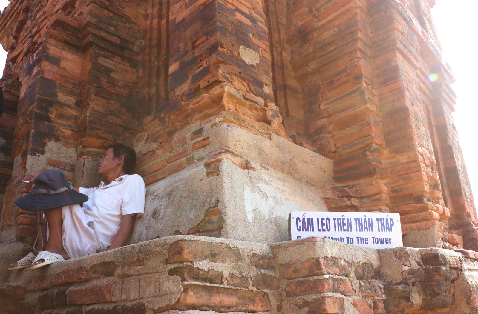 Một bảo vệ tại đây bức xúc nói: "Mấy anh em bảo vệ chúng tôi đã nhiều lần nhắc nhở người dân và du khách không nên leo trèo lên thân tháp để xem văn nghệ hay chụp ảnh. Nhưng, nhiều người vẫn không nghe mà cứ muốn leo lên để "săn ảnh"".