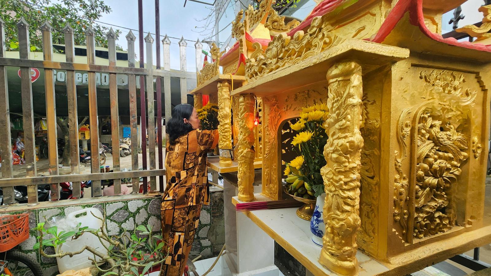 Bàn tay người dân Thành cổ chuẩn bị am thờ liệt sĩ ngày Xuân, tiếp nối mạch tri ân bền bỉ giữa các thế hệ trên mảnh đất từng đi qua chiến tranh. Ảnh: Minh Tân