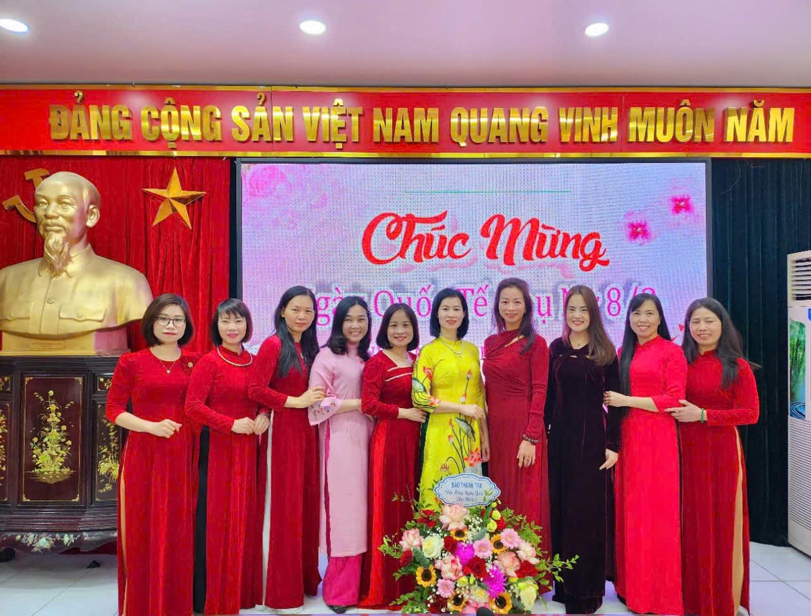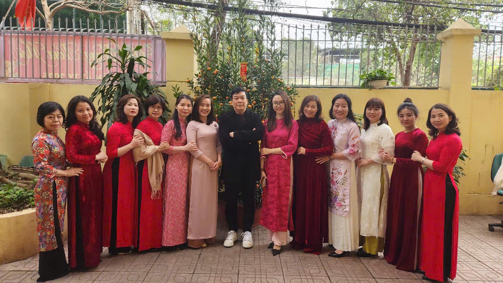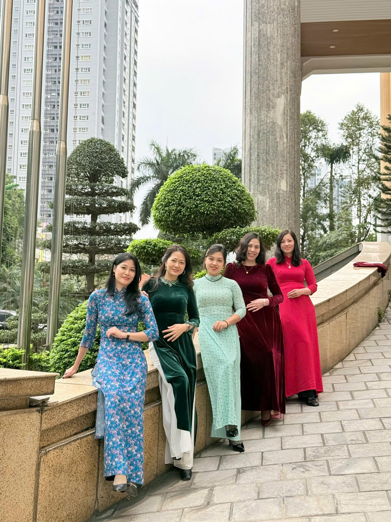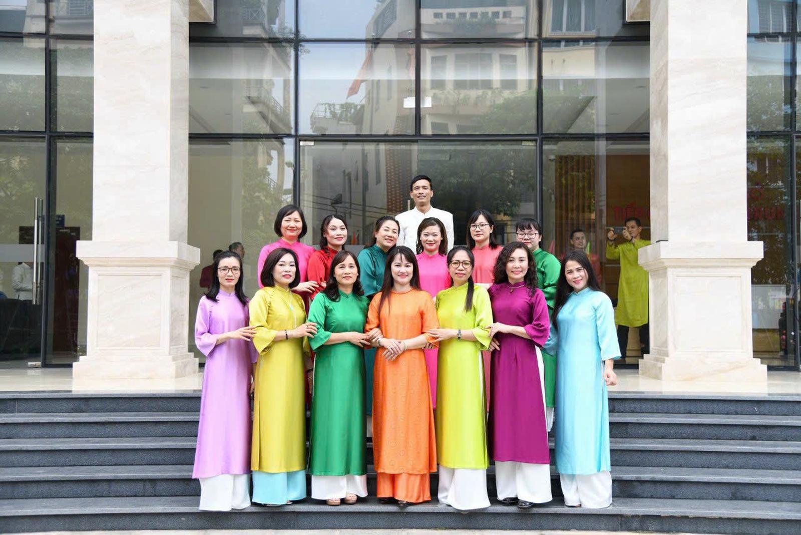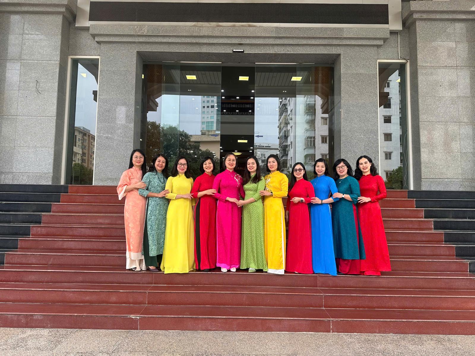 Chị em Vụ Hợp tác quốc tế duyên dáng trong tà áo dài. Ảnh: Phương Anh