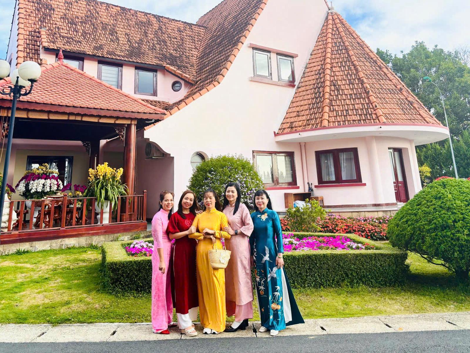 Tự tin, duyên dáng trong sắc áo dài hồng của tập thể nữ cán bộ Trường Cán bộ Thanh tra. Ảnh: Trần Hùng