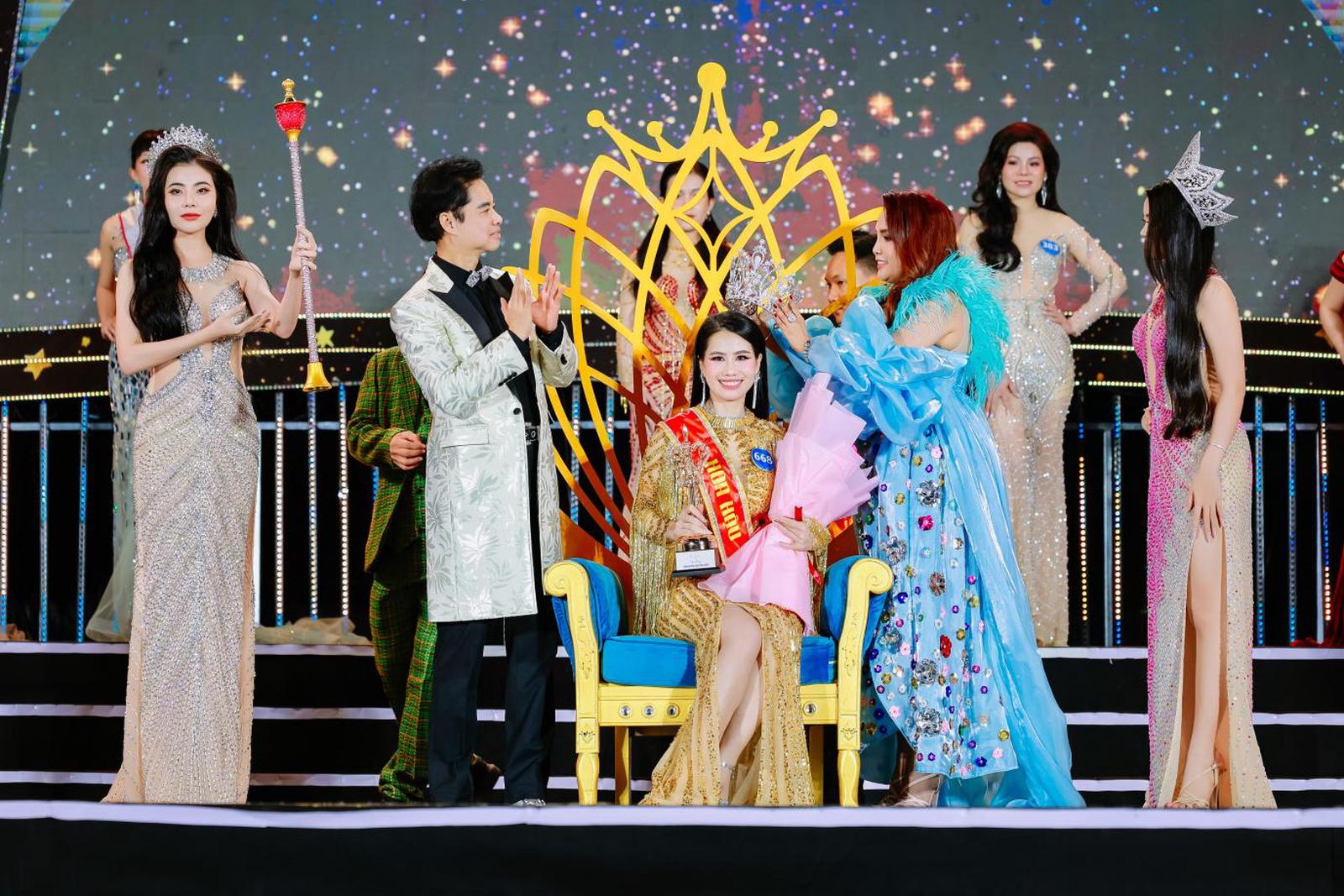 Tân Hoa hậu Phạm Thị Thanh Hải được Chủ tịch Cuộc thi kiêm Trưởng Ban Tổ chức Đặng Gia Bena và Trưởng Ban Giám khảo - Danh ca, nhạc sĩ Ngọc Sơn trao vương miện và quyền trượng