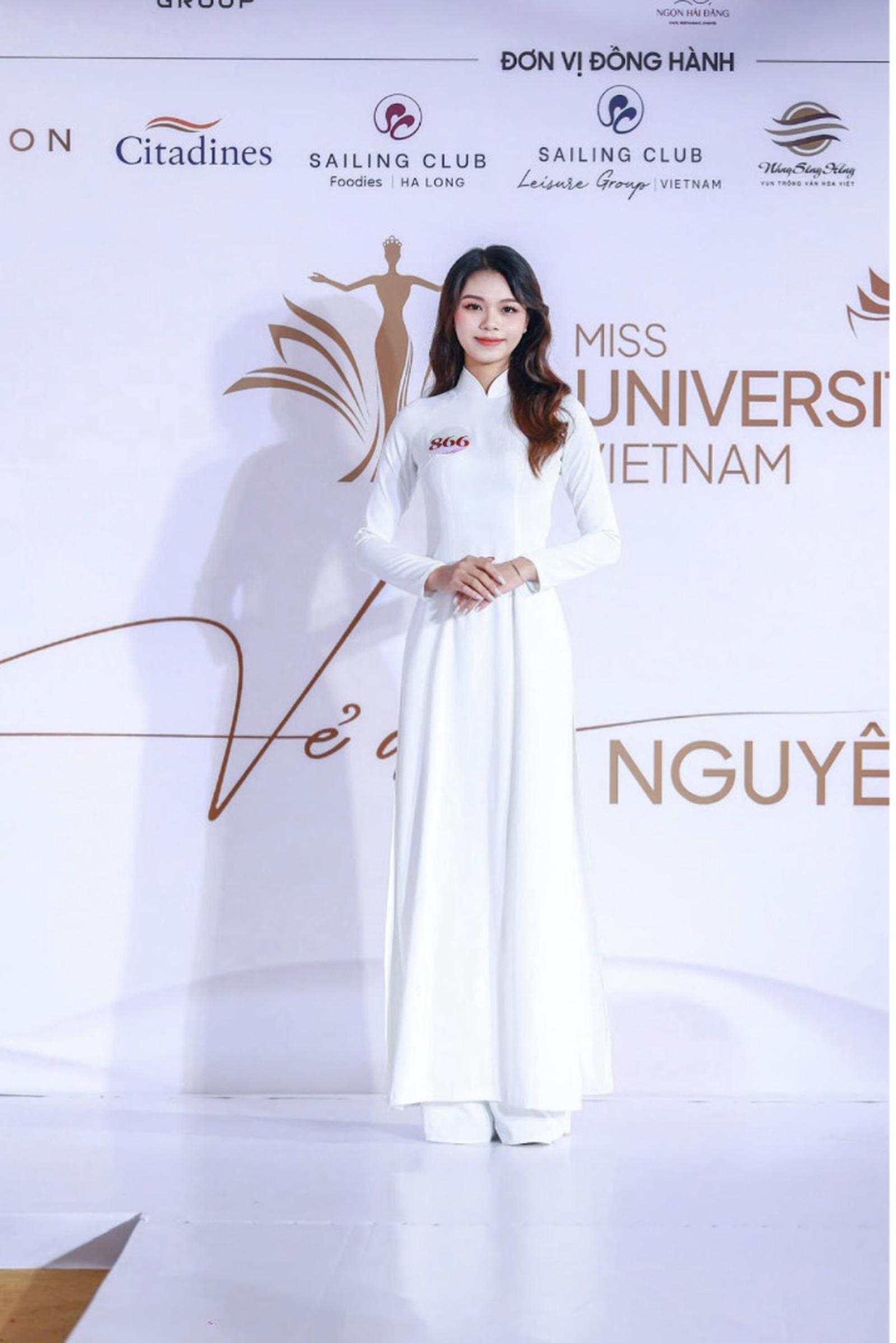 Thí sinh Trần Thanh Trúc thướt tha trong tà áo dài truyền thống Việt Nam tại sơ khảo miền Bắc