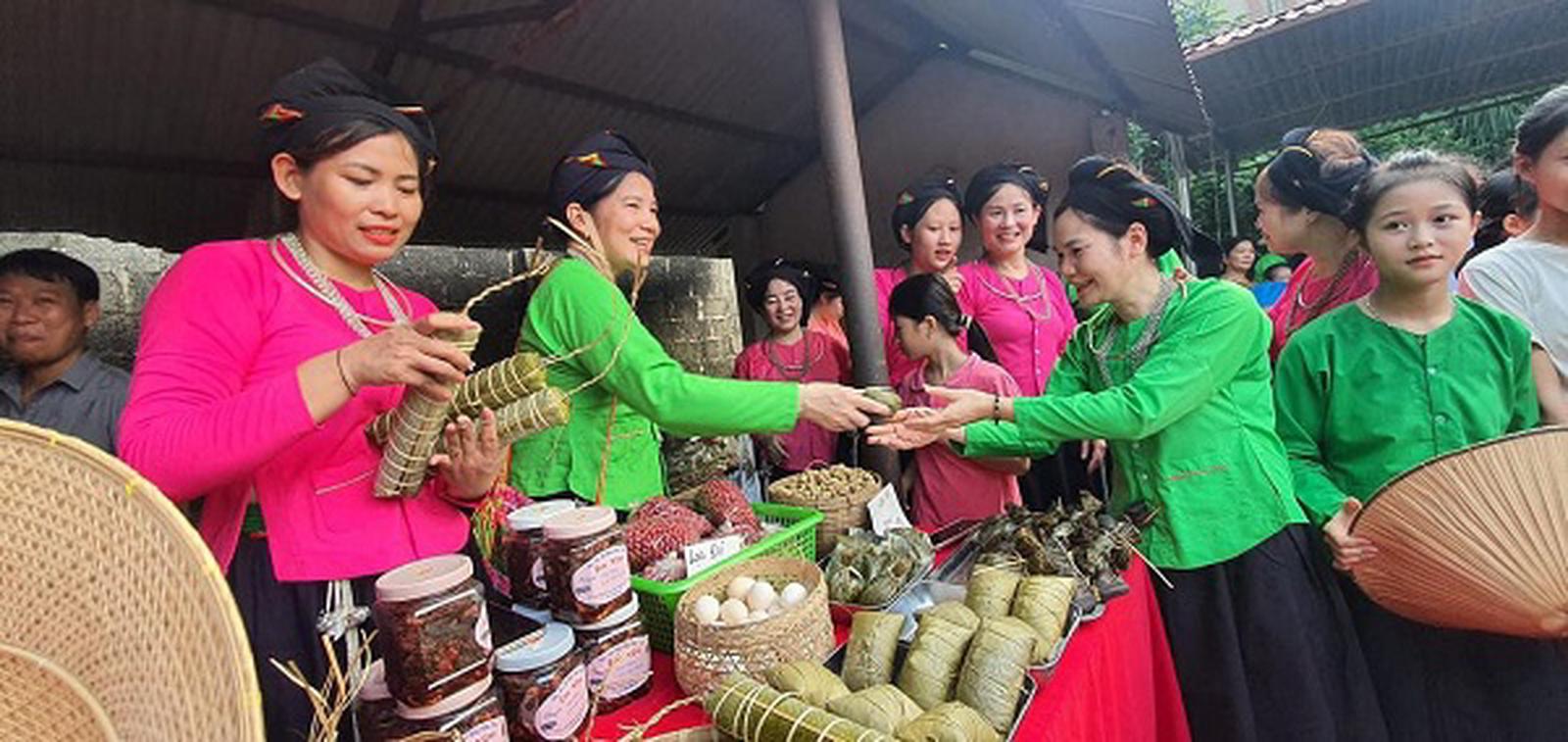 Đến ngày hội, du khách còn được tham quan các gian hàng sản phẩm truyền thống của đồng bào các dân tộc trên địa bàn xã Lâm Thượng cũng như các xã lân cận. Ảnh: Bùi Bình