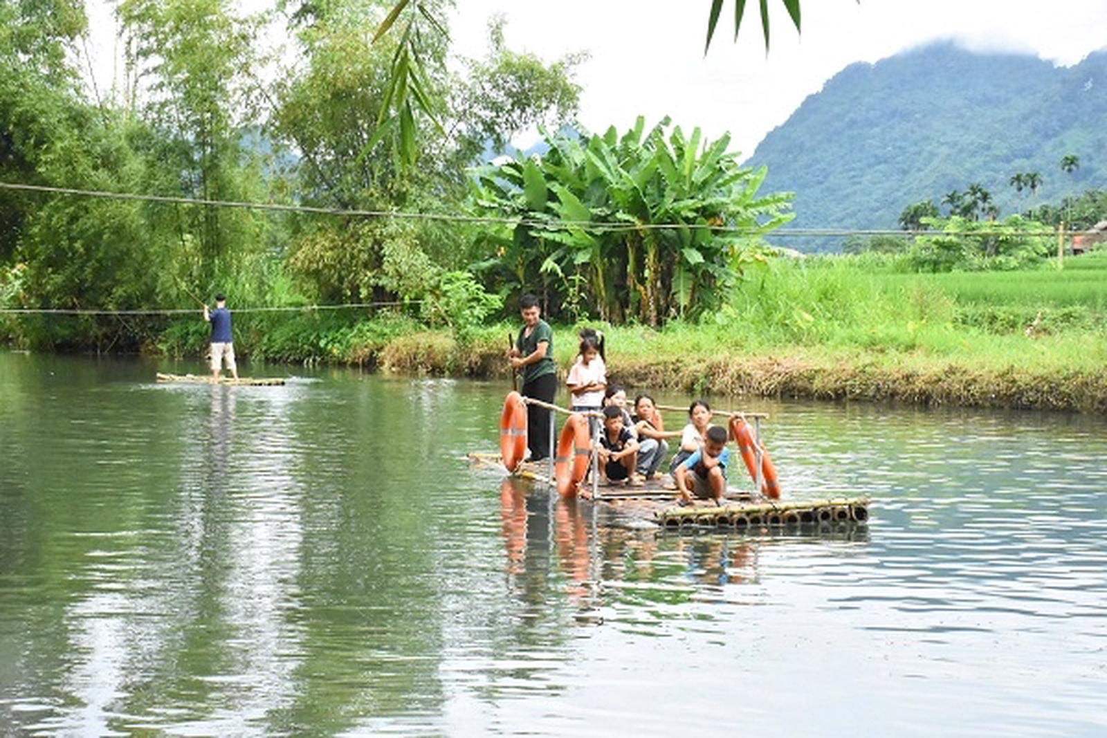 Du khách được trải nghiệm chèo mảng tại khu vực suối Phai Luông. Ảnh: Bùi Bình