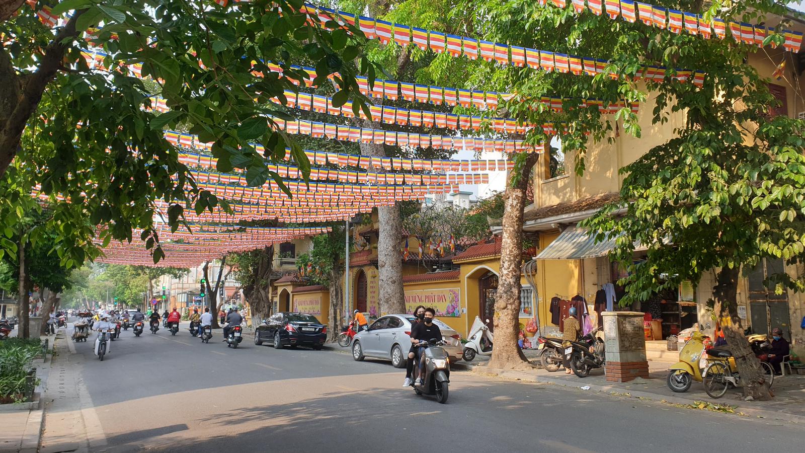 Phố Quán Sứ, Hà Nội, trang trí cho tuần lễ Phật đản. Ảnh: T.V