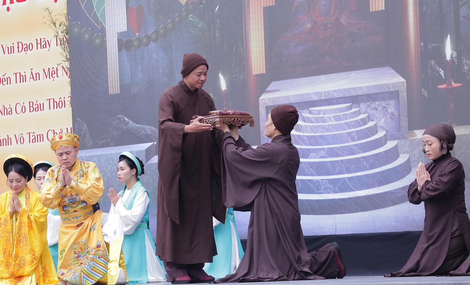 Trích đoạn vở cải lương về cuộc đời Nhị tổ Pháp Loa đã tạo nên không gian trang nghiêm và lắng đọng. Ảnh: CTV