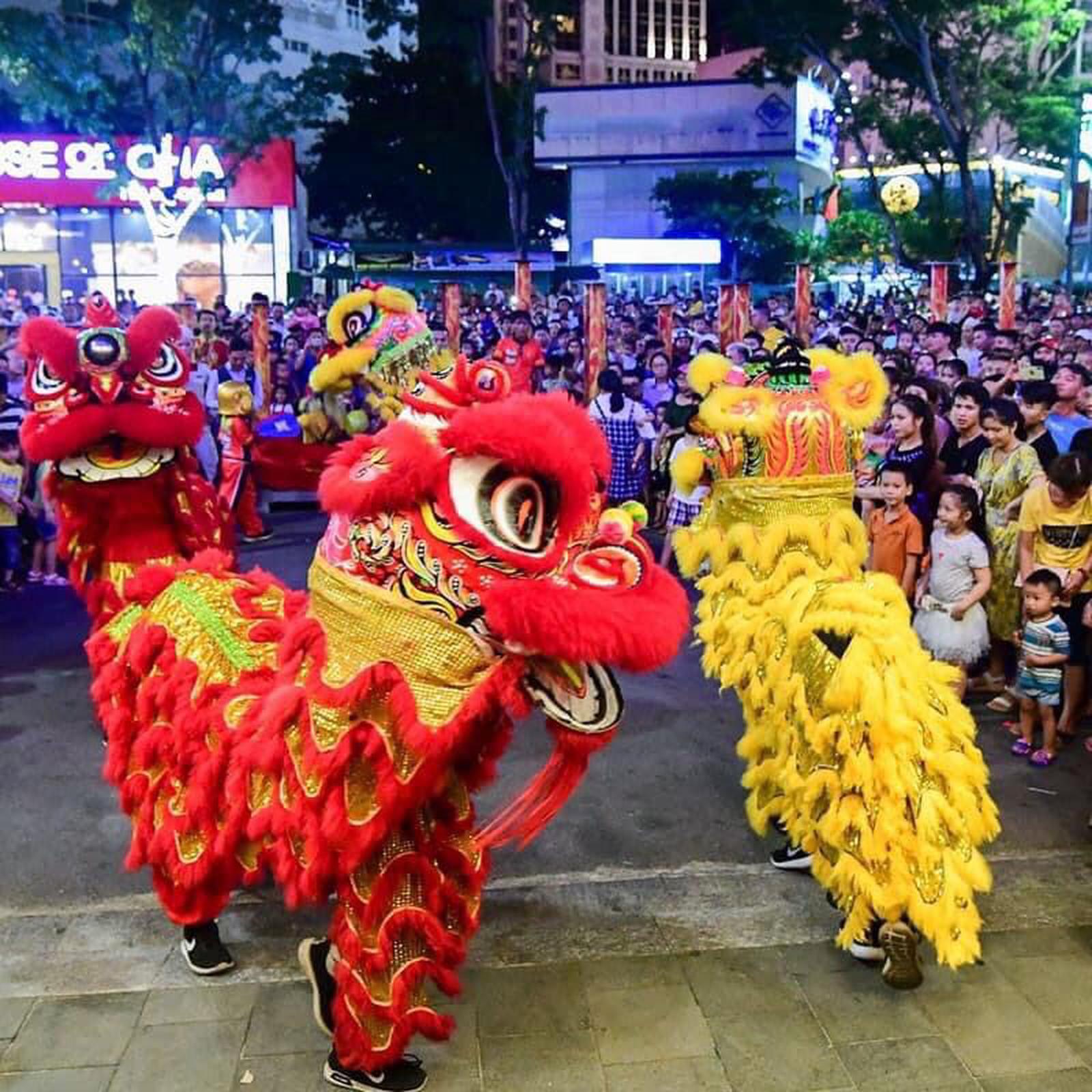 Tiết mục múa lân thu hút đông đảo du khách đi bộ