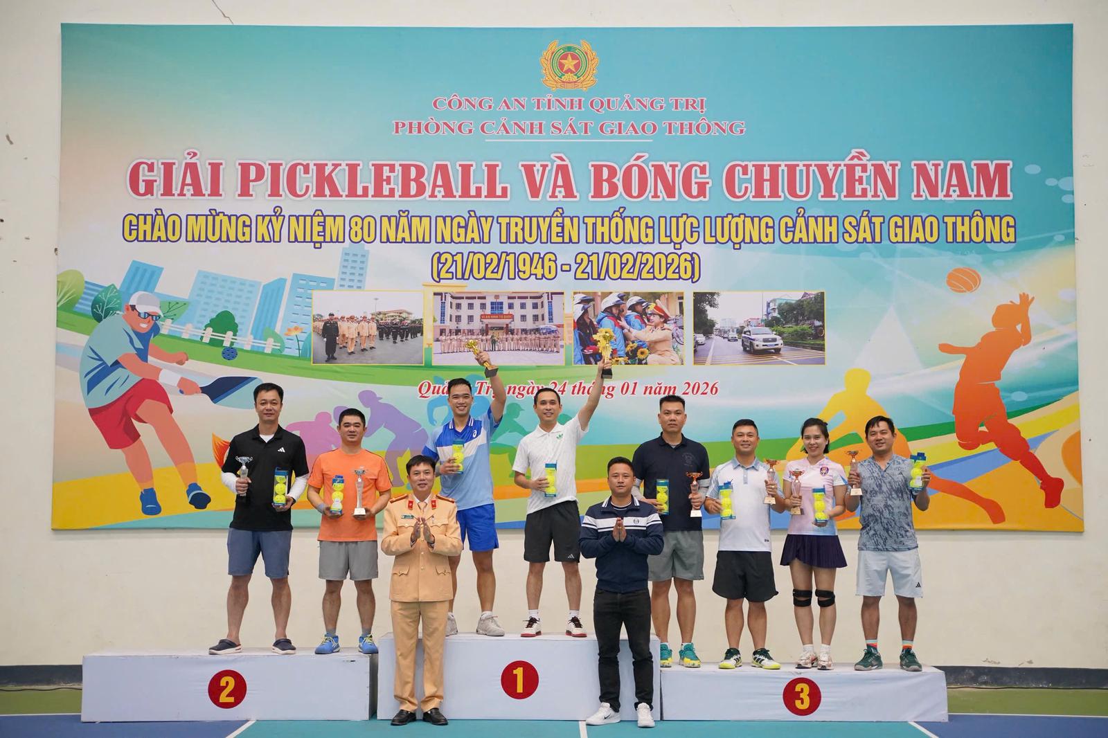 (Thanh tra) - Hướng tới kỷ niệm 80 năm Ngày Truyền thống lực lượng Cảnh sát giao thông (CSGT) 21/2/1946 – 21/2/2026, trong các ngày 24 và 25/1, Phòng CSGT (PC08), Công an tỉnh Quảng Trị đã tổ chức Giải Pickleball và Bóng chuyền nam lần thứ I năm 2026. Giải đấu diễn ra tại Nhà thi đấu Công an tỉnh, với sự tham gia của đông đảo cán bộ, chiến sĩ và người lao động trong đơn vị.