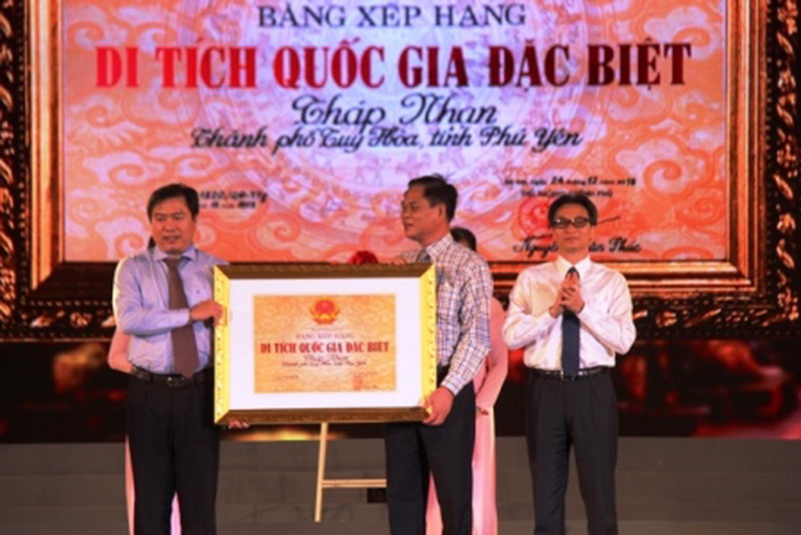 Tại buổi khai mạc, Phó Thủ tướng Vũ Đức Đam cũng đã trao Bằng xếp hạng di tích quốc gia đặc biệt kiến trúc nghệ thuật Tháp Nhạn cho Đảng bộ và chính quyền nhân dân tỉnh Phú Yên.