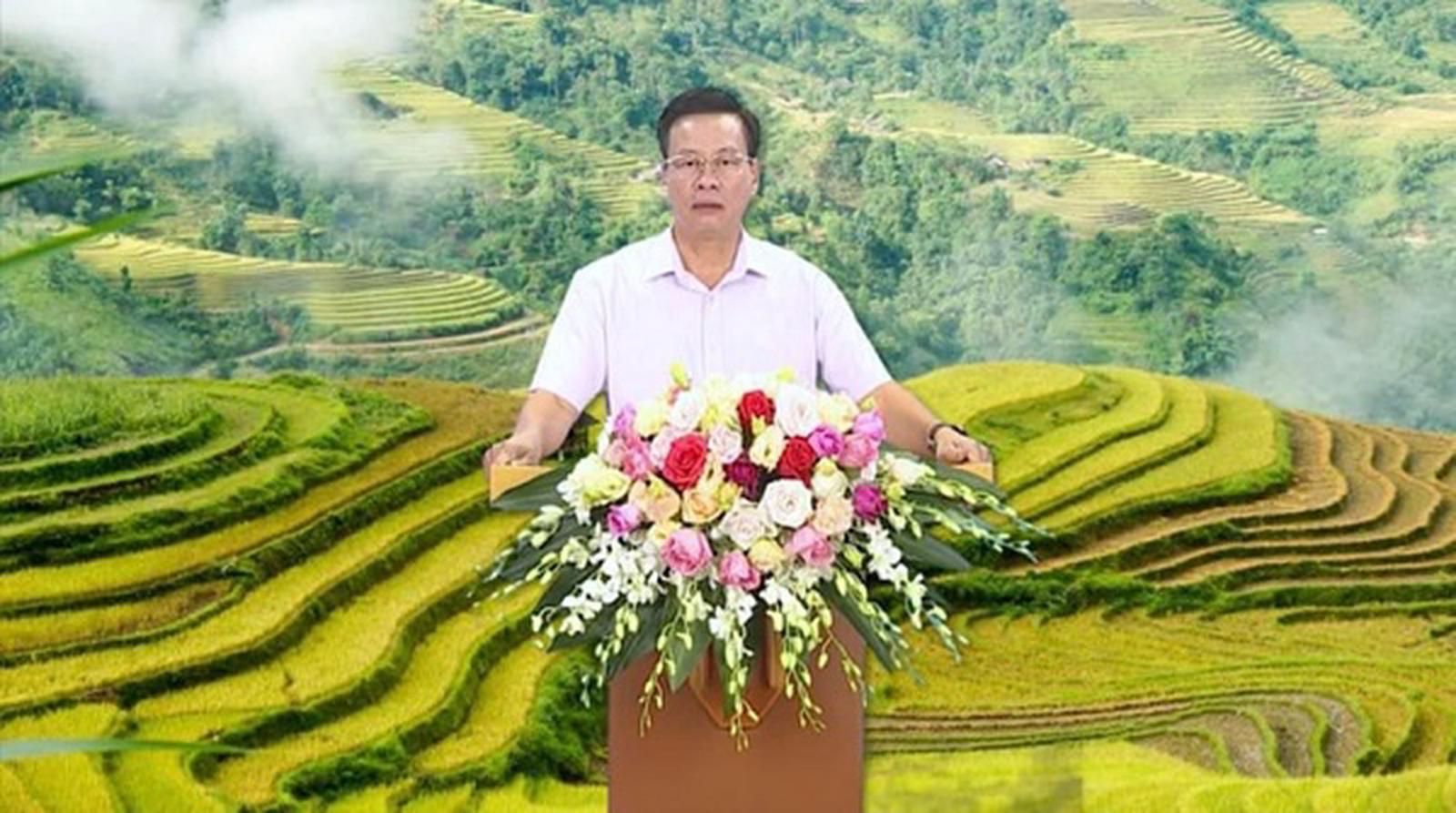 Ông Trần Văn Sơn, Chủ tịch UBND tỉnh Hà Giang phát biểu tại buổi khai mạc online. Ảnh: Ái Xoan