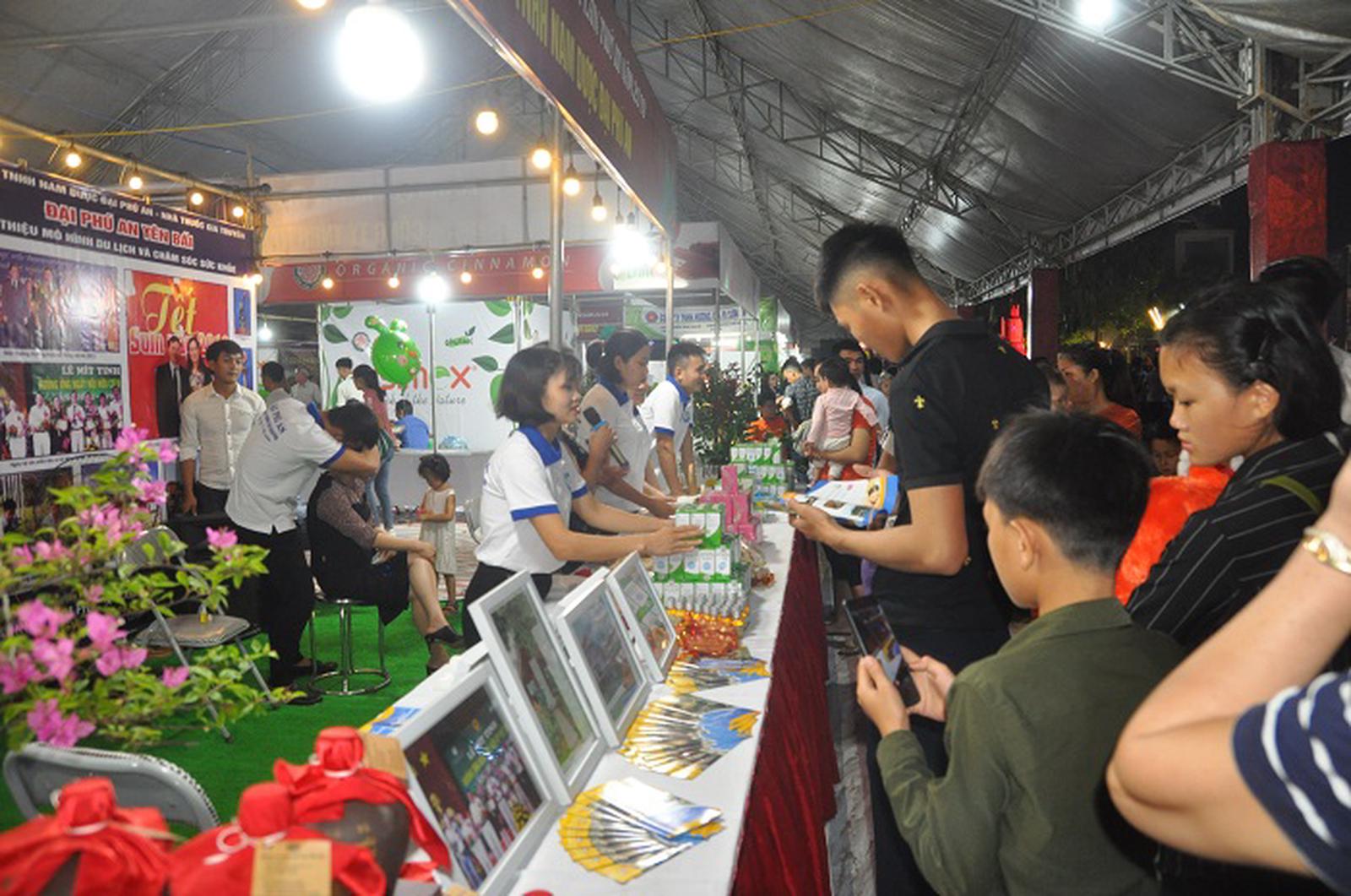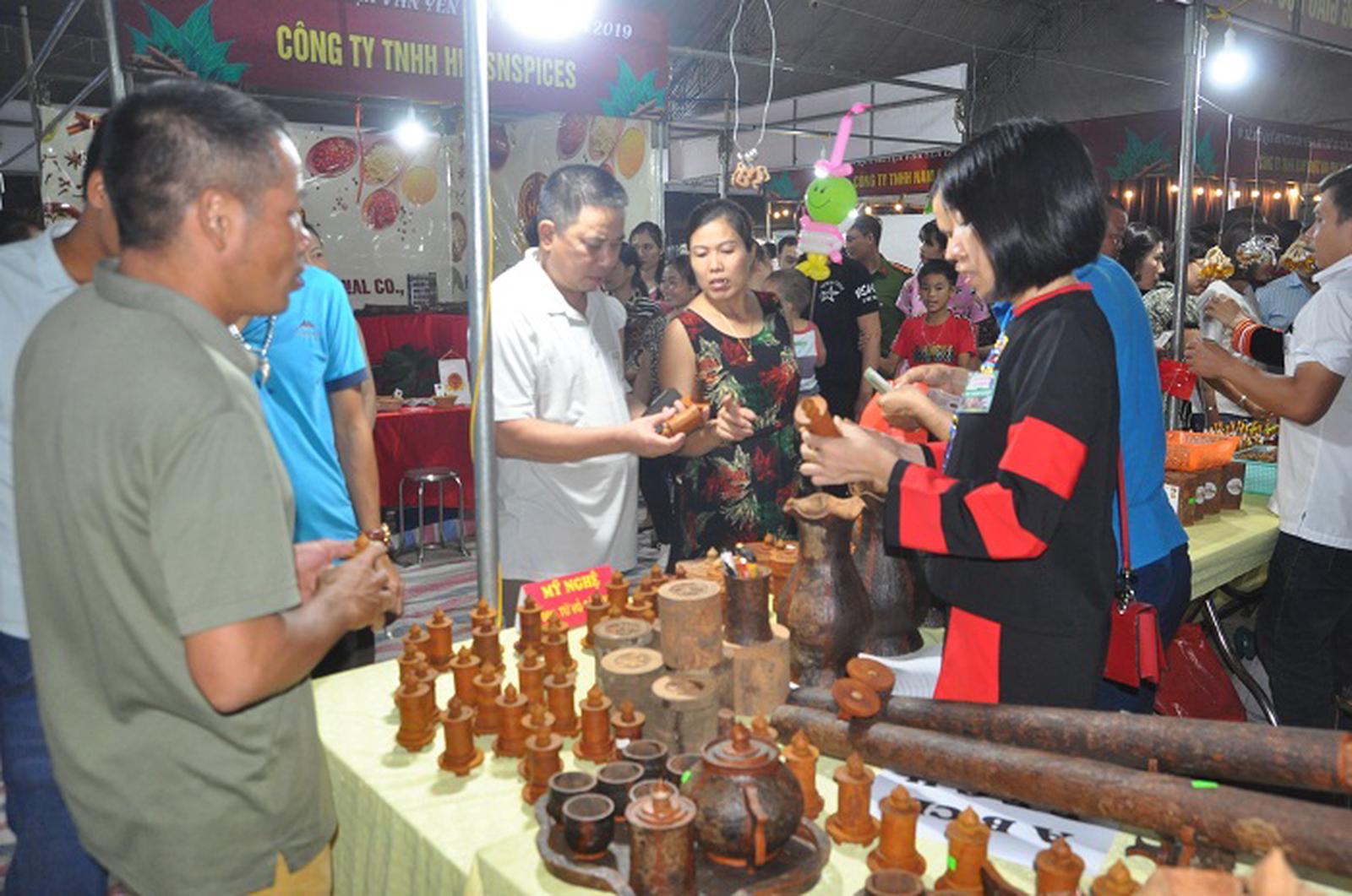 Hàng chục gian hàng trưng bày, giới thiệu các sản phẩm làm từ quế