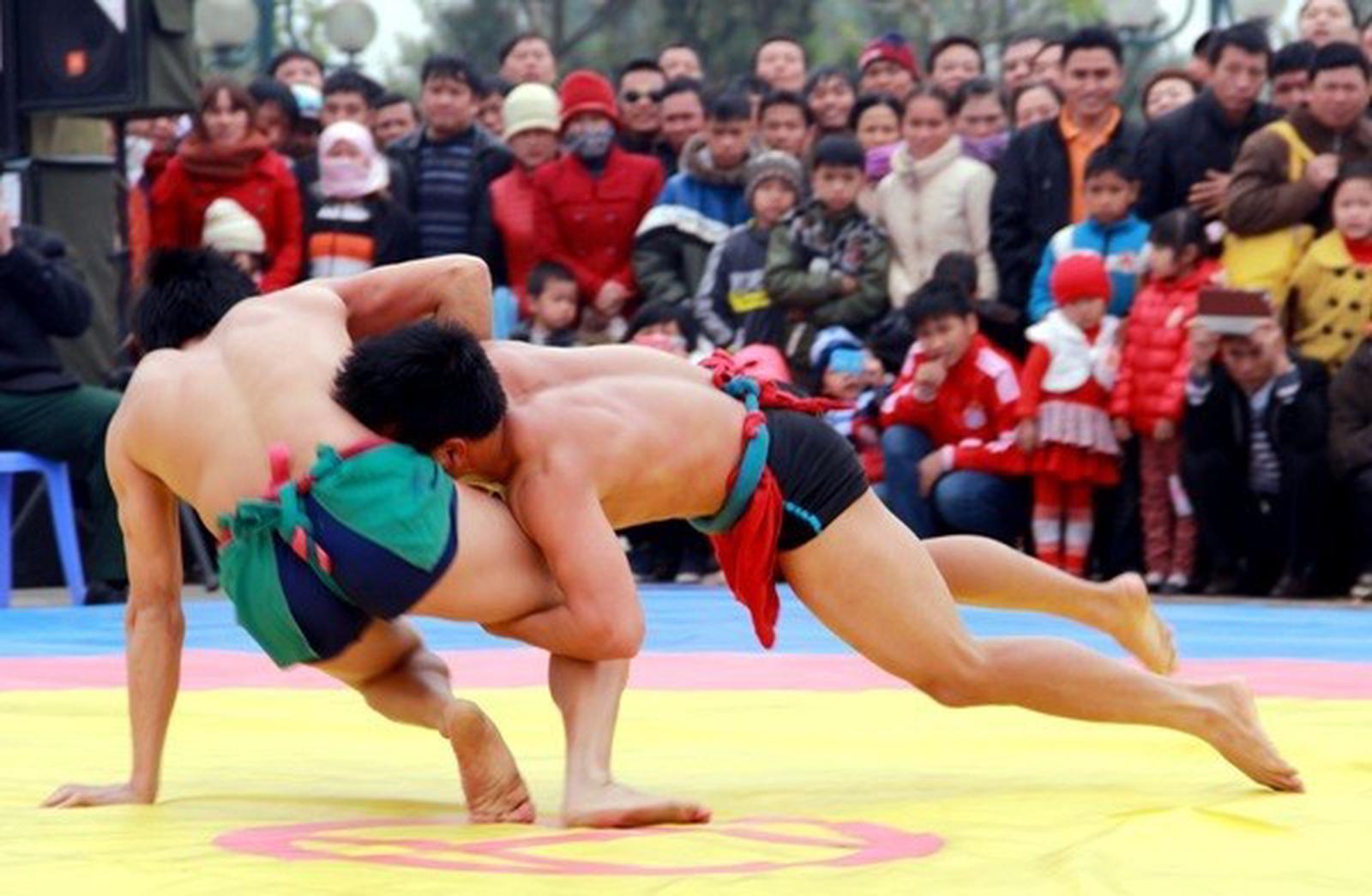 Ảnh minh họaTừ trong Tết bên cạnh đình hay một thửa ruộng rộng rãi, khô ráo người ta chuẩn bị các cột đu. Họ chọn cây tre to, dài, để trồng đu.Một cây đu có thể được trồng bởi 4-6 cây tre to. Cần đu cũng là những cây tre dài nhưng thon nhỏ, thường phải là tre đực để lúc người đu nắm vào cho gọn và chắc tránh xảy ra trượt hay tuột tay lúc đu nhanh, mạnh.Tùy theo sở thích mà người ta đu một hay đu đôi. Khi một người lên cần đu có thể nhờ một người khác đẩy cho mình có đà. Sau đó là tự người đu nhún tùy ý. Đẹp nhất là đu đôi, các đôi trai gái ưng ý lựa chọn nhau lên đu, người nhún người đẩy.Tài năng và lòng dũng cảm của các chàng trai cô gái được phô bày ở đây như dịp tự thể hiện bản thân.Đấu vậtẢnh minh họaĐấu vật là một trò chơi thượng võ, cũng là một môn thể thao rất nổi tiếng vào các dịp Tết dịp Hội. Ở Việt Nam ngoài đấu vật ngày Tết còn có nhiều hội vật Làng Sình, Liễu Đôi, Hà Nam, Mai Động... Xưa ở vùng Bắc Ninh, Phú Thọ có những lò vật và những đô vật nổi tiếng cả một vùng.Để khuyến khích tài năng cũng như sự rèn luyện của trai tráng, nhiều làng xã đã treo giải vật rất cao trong ba ngày tết. Tục xưa người ta trao giải bằng tiền, bằng mâm đồng, nồi đồng hay một số thứ khác. Quy định chung của cuộc đấu là người chiến thắng phải vật cho đối phương thua trắng bụng (ngã ngửa ra đất) hay nhấc bổng được đối phương lên.Trong môn vật này không chỉ đòi hỏi sức khỏe mà sự mưu trí và nhanh nhẹn đóng góp phần đáng kể. Về kỹ thuật cũng có những "miếng" riêng của nó như đệm, bốc, ghì... mà tùy theo từng hoàn cảnh và điều kiện đô vật phải biết lợi dụng triệt để các thời cơ quật ngã hay bê bổng đối phương.Chọi gàẢnh minh họaLà một thú chơi tao nhã, vừa có tính tiêu khiển lại vừa khuyến khích việc chăn nuôi của nhà nông xưa. Đó là một thú chơi mà hầu hết ở các ngày Tết, ngày hội đều có.Nhiều làng nổi tiếng vì chơi gà chọi như Đình Bảng (Bắc Ninh), Thổ Hà, Yên Phụ (Yên Phong) hay một số nơi khác ở cả ba miền Trung, Nam, Bắc đều có... Những chú gà nòi được nuôi rất công phu và đưa chúng tập luyện với các chú gà chọi khác để làm quen dần với những trận chiến đấu.Các sới gà chọi vào dịp Tết Nguyên Đán thường thu hút đông đảo người xem.Kéo coẢnh minh họaLà một trò chơi thu hút được rất nhiều người cùng tham gia, vừa có tác dụng rèn luyện sức khỏe, lại vừa vui vẻ, thoải mái. Nó đã trở thành trò chơi tập thể, phong tục phổ biến ở nhiều nơi trong nước Việt Nam.Cách chơi đơn giản, số người chơi bao nhiêu tùy ý, chia làm hai phe bằng nhau, làm mốc đánh dấu vạch vôi để bên nào kéo được đối phương sang qua vạch mốc bên kia là bên đó thắng.Chơi cờ tướng - cờ ngườiẢnh minh họaĐây là thú chơi tao nhã, trí tuệ nhân những lúc trà dư tửu hậu. Các cụ thường gặp nhau bên chén trà và mở bàn cờ tướng ra giải trí.32 quân cờ chia thành hai phe (16 quân đỏ và 16 quân đen), bày xong là cuộc đấu trí bắt đầu. Cờ người cũng là cờ tướng mà quân cờ là người thật, cũng chơi trên sân bãi, 16 nam áo đỏ, 16 nữ mặc áo đen đeo biển (tên quân cờ) trước ngực, đứng vào vị trí.Hai tướng (Tướng Ông, Tướng Bà) mặc đẹp (như cờ tướng) có hai cờ đuôi nheo cắm chéo sau lưng, được che lọng. Gặp buổi trời nắng, thì mỗi quân cờ được một người che ô, đứng bên và đi theo mỗi lần quân chuyển. Hai đối thủ ngồi phía sau. Có người chạy cờ, lo việc chuyển quân theo ý định của người chơi.Mỗi lần đi một nước, đấu thủ (có tiếng trống khẩu) gõ một tiếng. Người chạy cờ tới nghe lệnh và chuyển quân trên bãi. Nguyên tắc đi quân là mã nhật, tượng điền, xe liền, pháo cách.Vào cuộc chơi phải bình tĩnh, thận trọng, chủ động không bị phân tán bởi những người xem mách nước. Đi một nước phải tính trước 2 - 3 nước tiếp theo để khỏi bị bất ngờ trước đối thủ của mình.Cờ tướng, cờ người thường thấy trong các ngày hội, ngày Tết, mừng Xuân mới. KIM CHUNG (TTXVN/VIETNAM+)