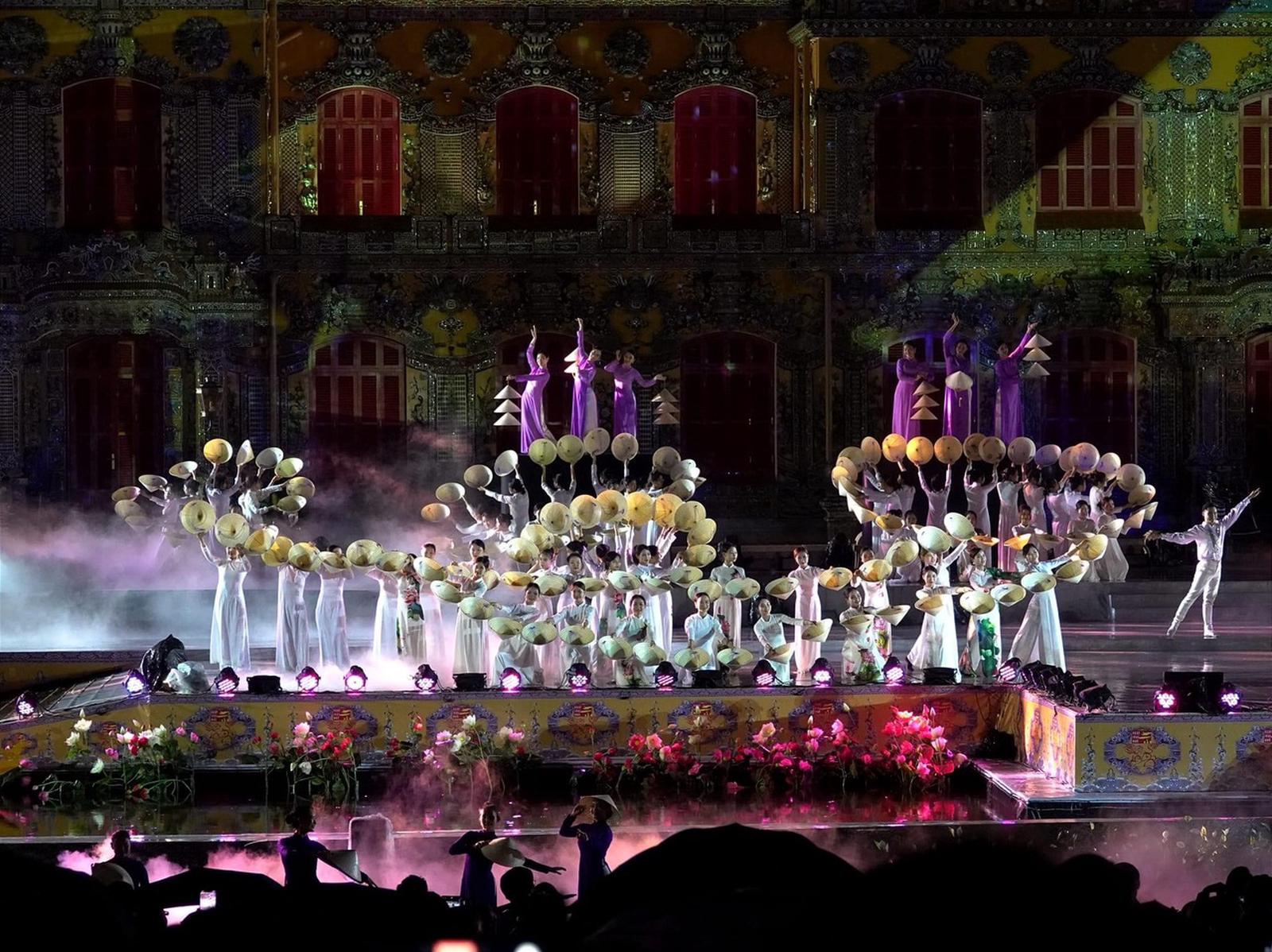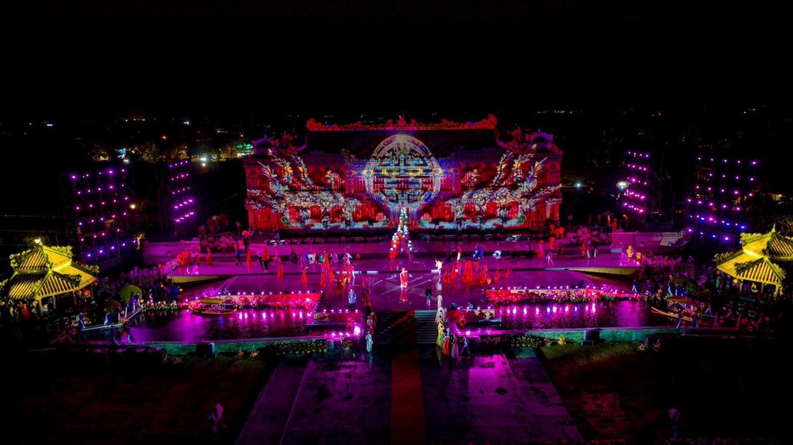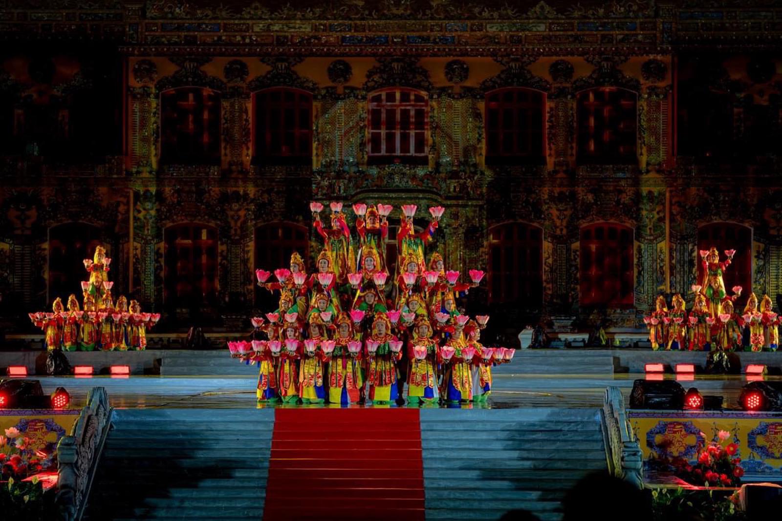Sau lời phát biểu khai mạc, khán giả được chứng kiến những tiết mục nghệ thuật truyền thống và đương đại chất lượng cao trong nước và quốc tế. Sự kết hợp trình chiếu Laser, Led Matrix, Hologram, 3D Mapping trên nền sân khấu nghệ thuật bán thực cảnh làm cho điện Kiến Trung trở nên lung linh huyền ảo. Chương trình được dàn dựng công phu với sự tham gia của hàng chục đoàn và nhóm nghệ thuật đến từ 7 quốc gia: Lễ hội Ánh sáng, Nghệ sĩ Dương cầm David Greilsammer, Nhóm nhảy Hiphop Double Impro (Phái đoàn Wallonie-Bruxelles, Bỉ), Nhóm vũ nhạc Flamenco Hispano (Tây Ban Nha), Đoàn nghệ thuật múa Trống Eisa Urakaji (Nhật Bản), Viện Nghiên cứu Vụ kịch Chiết Giang (Trung Quốc), Nghệ sĩ Piano Steve Barakatt (Canada). Tất cả sẽ cùng phô diễn nét độc đáo, tinh tế cũng như sự đa dạng về nghệ thuật truyền thống và đương đại.