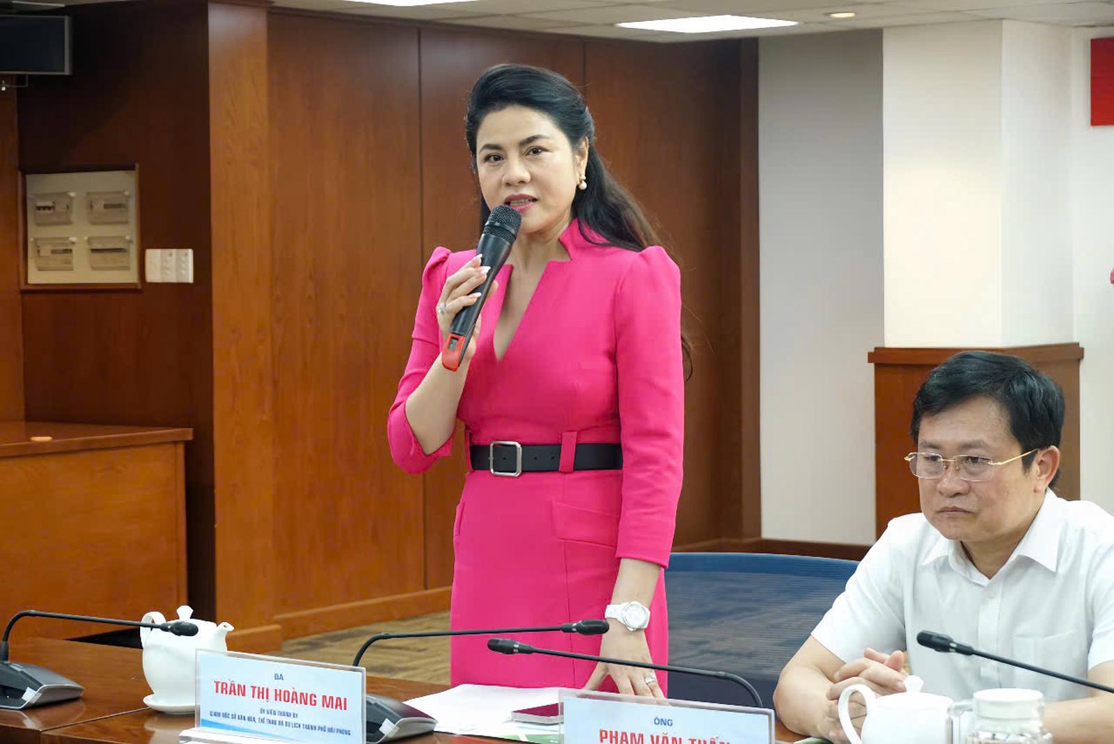 Bà Trần Thị Hoàng Mai, Giám đốc Sở Văn hoá, Thể thao và Du lịch thành phố Hải Phòng phát biểu tại buổi họp báo. Ảnh: TH