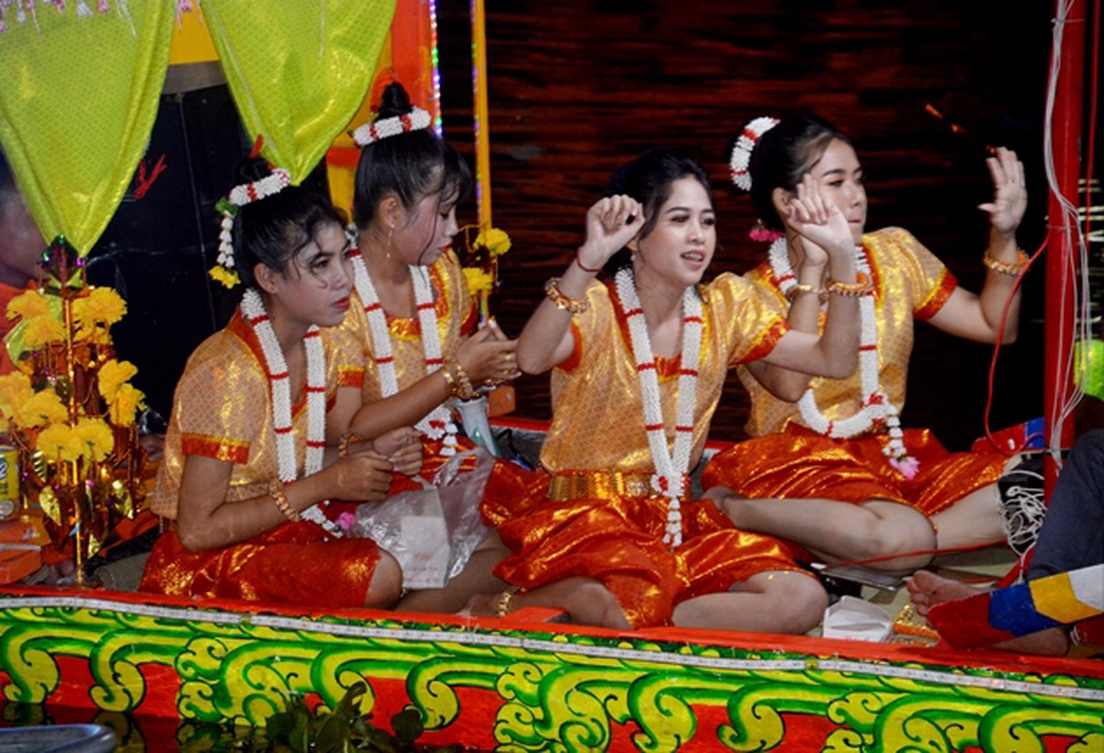 Thiếu nữ Khmer múa hát trên ghe Cà Hâu trong lễ hội Ok Om Bok - đua ghe Ngo. Ảnh: XL