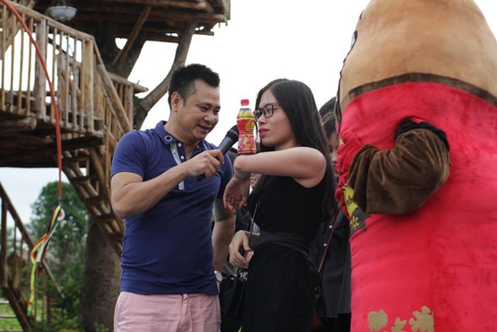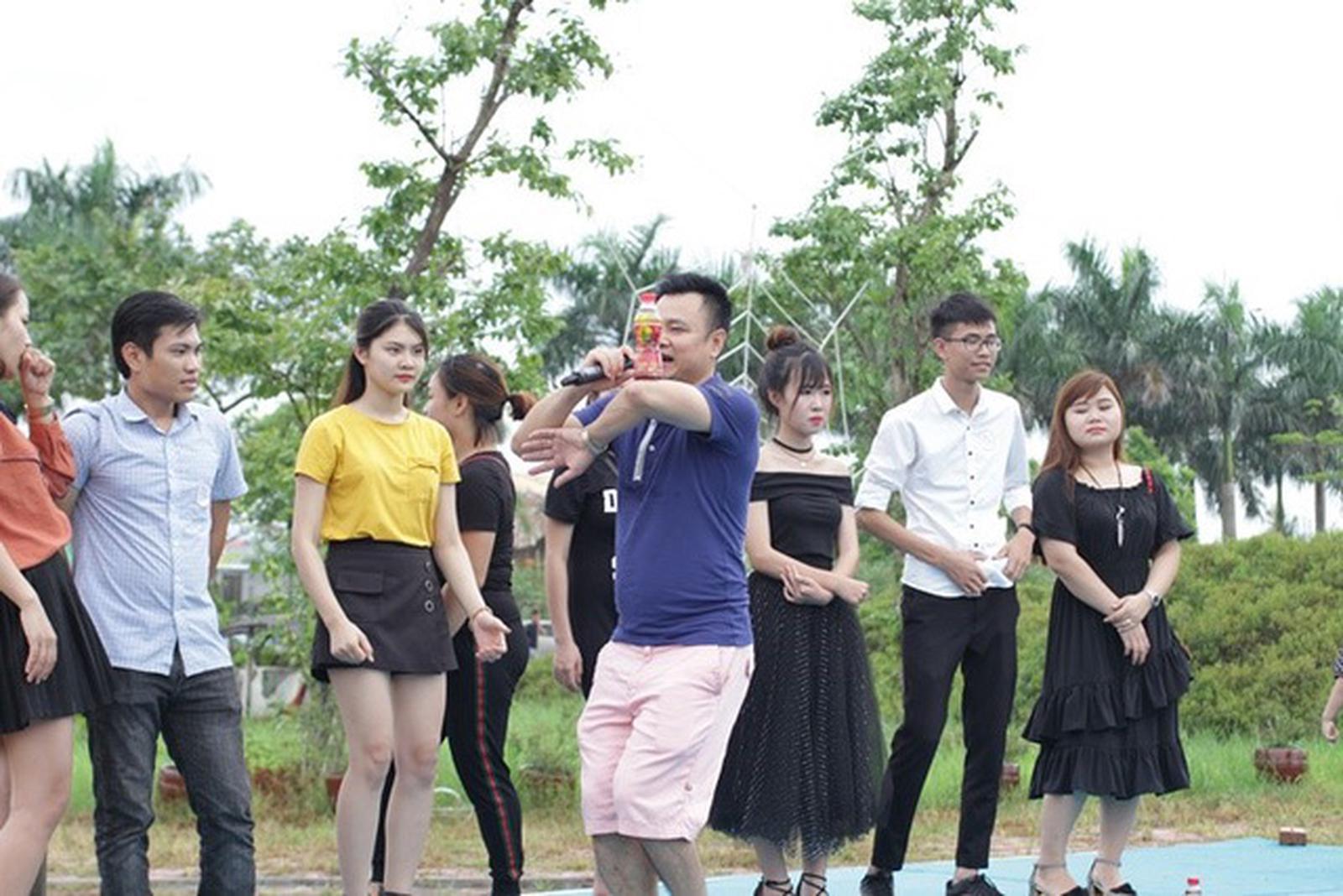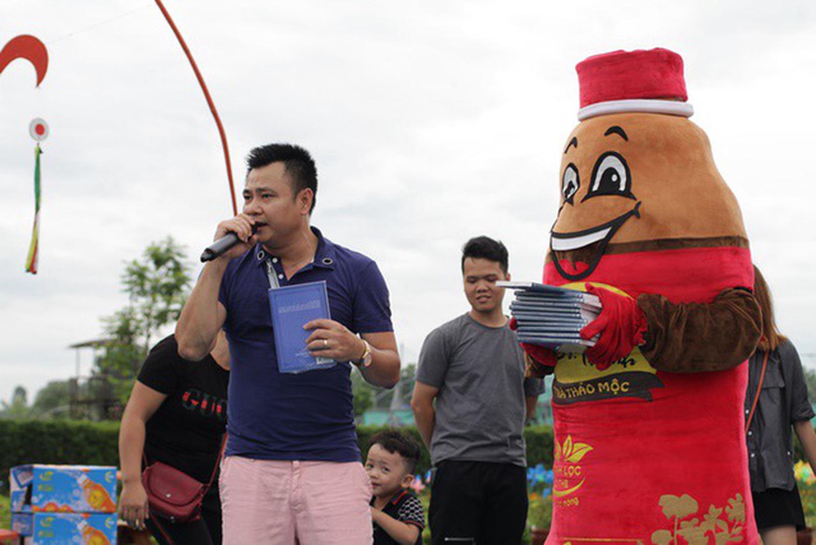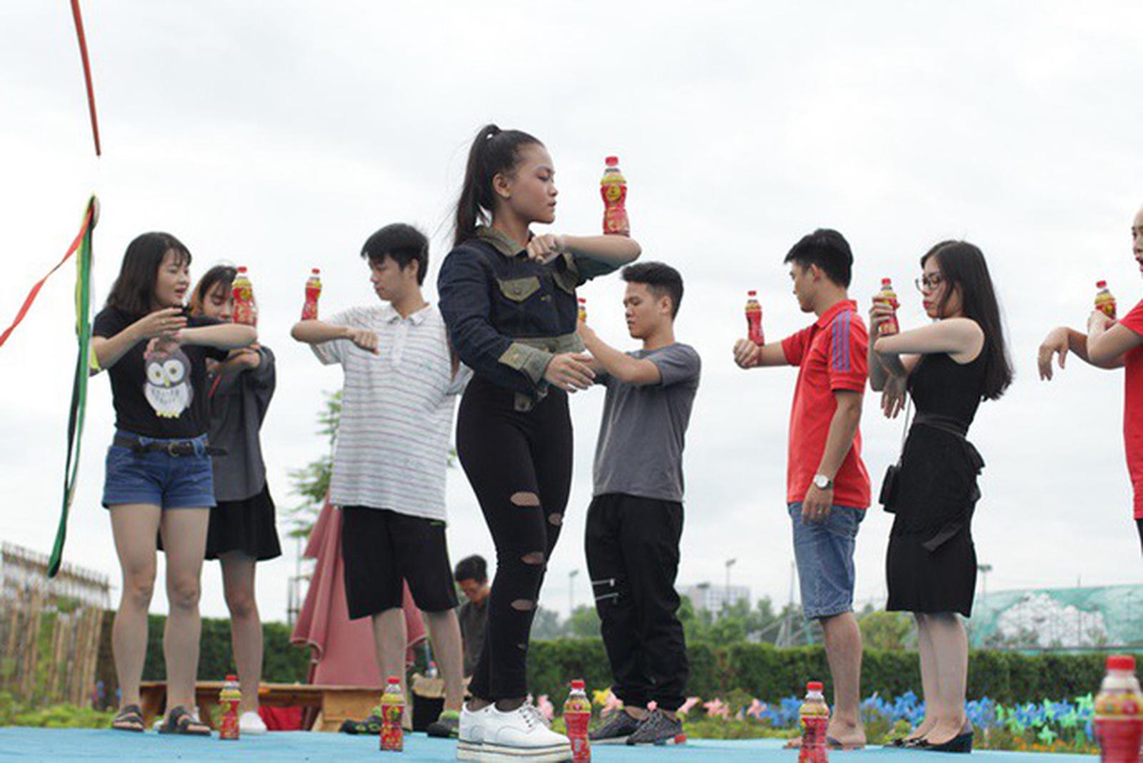 Trò chơi do nghệ sĩ Tự Long tổ chức chính là đặt chai Trà thanh nhiệt Dr Thanh lên khuỷu tay, giữ thăng bằng và đi đến đích