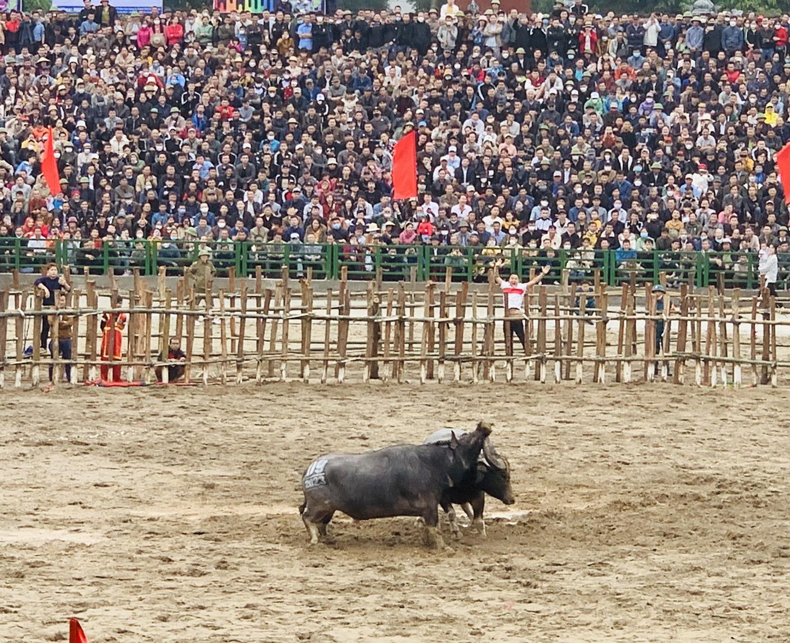 Sôi nổi lễ hội chọi trâu Hải Lựu, huyện Sông Lô, tỉnh Vĩnh Phúc năm 2023. Ảnh: TQ