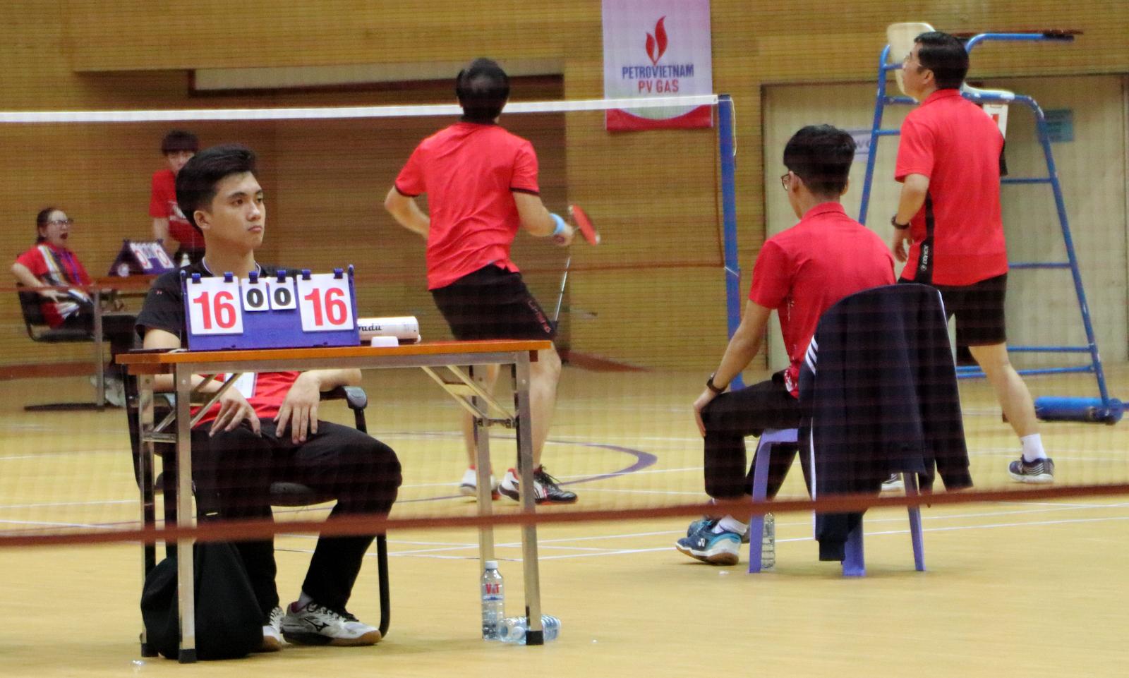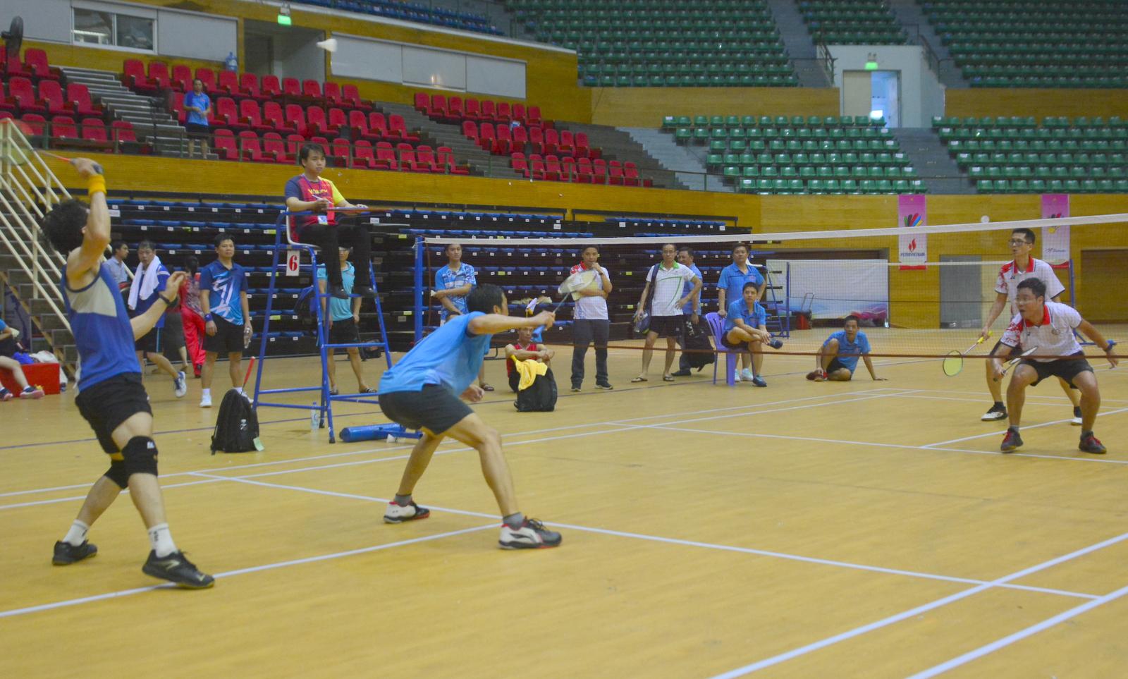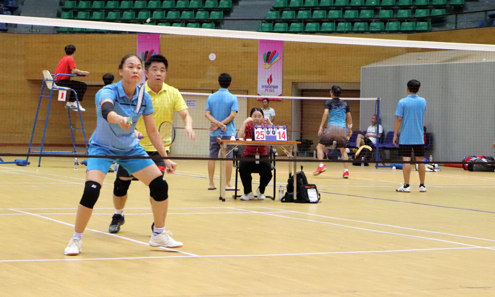 Dù không chuyên nhưng với tinh thần hết mình những VĐV đã tạo nên những màn đối đấu kịch tính trên sân đấu. Ảnh: Minh Tân