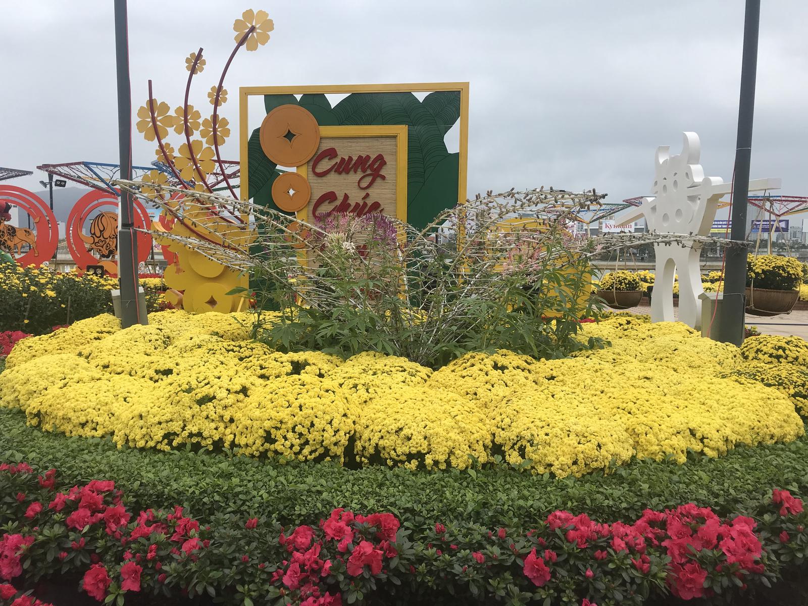 Hoa dùng trang trí là những loại hoa thích hợp với điều kiện khí hậu TP, gồm: Cúc pha lê, cúc đại đóa, cúc bướm, cúc vạn thọ, thược dược, đồng tiền, mào gà đuôi phượng... cùng với phối cảnh là con trâu vàng - biểu hiện cho năm Tân Sửu, “Cung chúc tân Xuân”; “Tấn tới tấn lộc”…