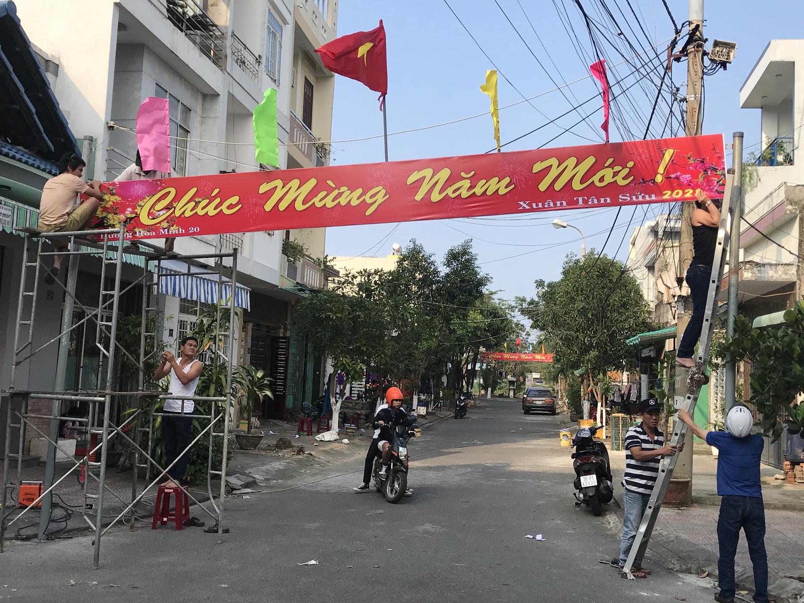 Tại quận Hải Châu, Thanh Khê, Liên Chiểu và huyện Hoà Vang; nhiều khu dân cư, tổ dân phố, đường phố đã vận động các hộ dân đóng góp kinh phí lắp dựng cổng chào trang trí cờ, băng rôn, đèn lồng chào đón Xuân mới; không chỉ tạo cảnh quan tươi đẹp mà còn tạo không khí phấn chấn, hào hỡi trong nhân dân.