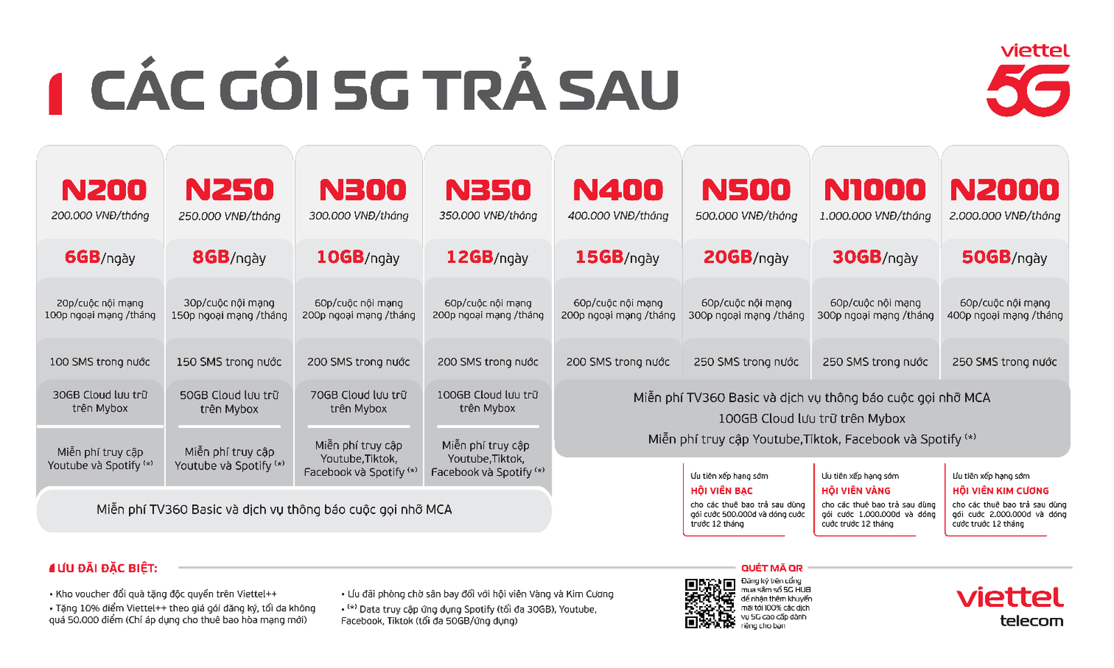 Tổng hợp các gói cước trả sau NINE 5G của Viettel