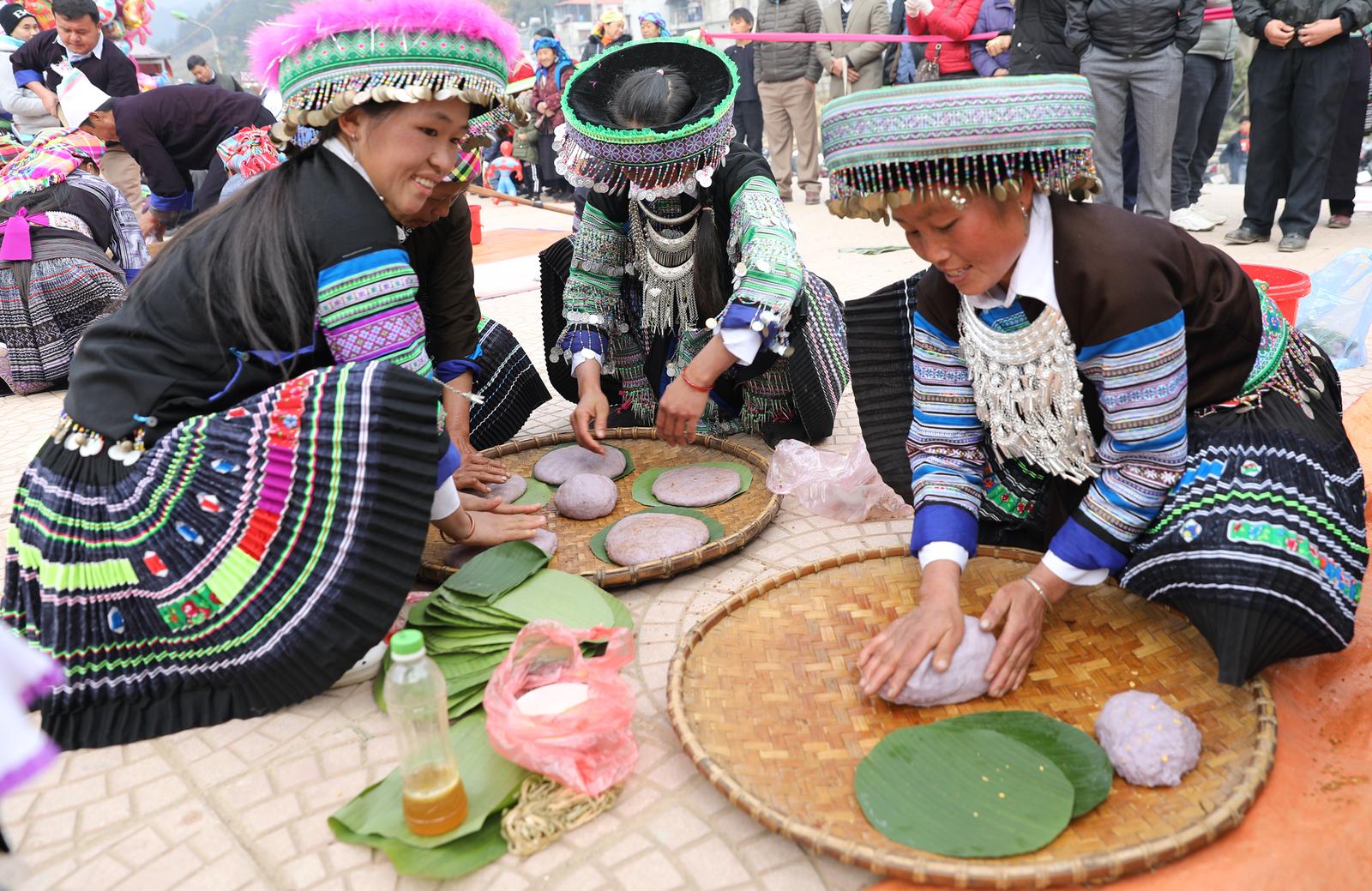 Trong những ngày này, người Mông chỉ ăn các món bánh và thịt, tuyệt đối không ăn rau. Theo quan niệm của người Mông, không ăn rau để tránh trong năm mới đi làm nương, làm rẫy cỏ mọc nhiều, mùa màng thất thu, chăn nuôi trâu bò không được thuận.
