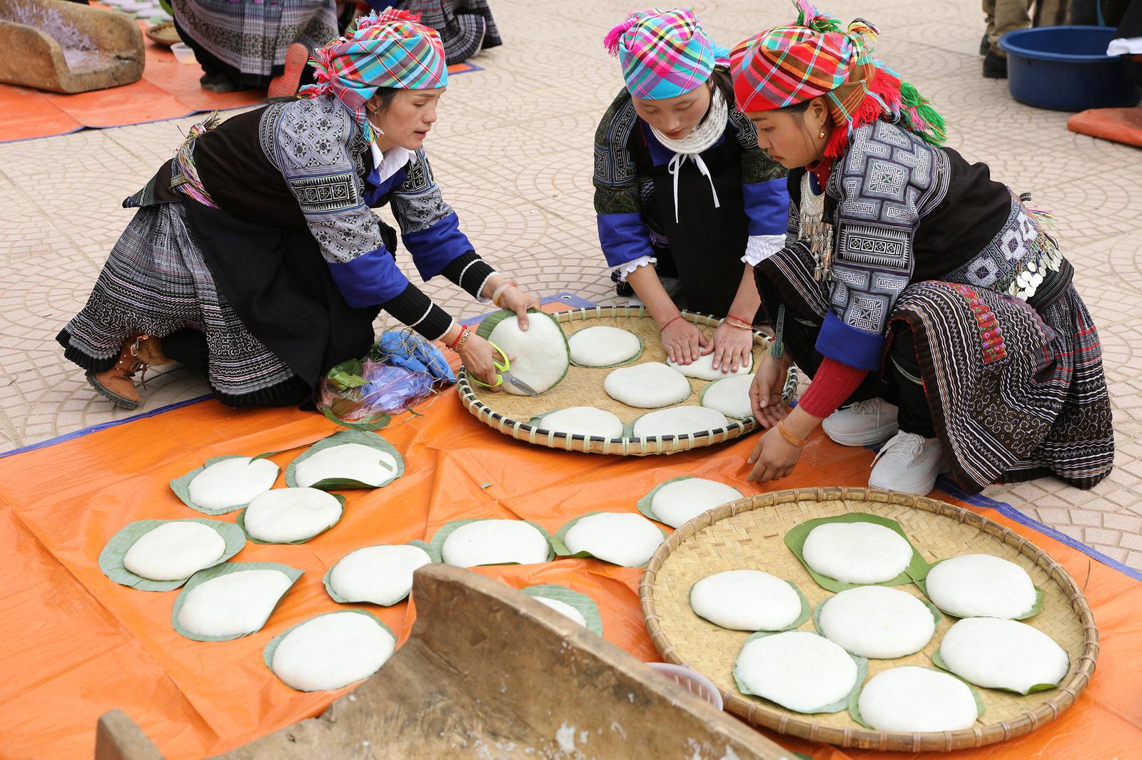 Trong ngày Tết, ngoài rượu, thịt, thì bánh dày là thứ không thể thiếu trong mỗi bữa ăn của gia đình người Mông. Theo quan niệm của đồng bào Mông, bánh dày tượng trưng cho Mặt trăng, Mặt trời - là nguồn gốc sinh ra con người và muôn loài, là biểu tượng sức mạnh của dân tộc. Các nguyên liệu chính để làm bánh dày gồm: Gạo nếp, hạt vừng, lá xôi, lá chuối hoặc lá dong dùng gói bánh. Để chuẩn bị làm bánh dày, gạo nếp phải được ngâm kỹ từ đêm hôm trước. Muốn có được những chiếc bánh dày dẻo, mịn thì xôi cũng phải chín kĩ và bánh phải được giã khi xôi còn nóng hổi. Bánh dày người Mông thường được giã bằng những chiếc chày gỗ trong máng gỗ. Khi đồ xôi làm bánh, lửa phải to và đều. Bánh dày người Mông vừa là biểu tượng của no ấm, vừa là hương vị riêng của đồng bào Mông nơi vùng cao Tây Bắc.