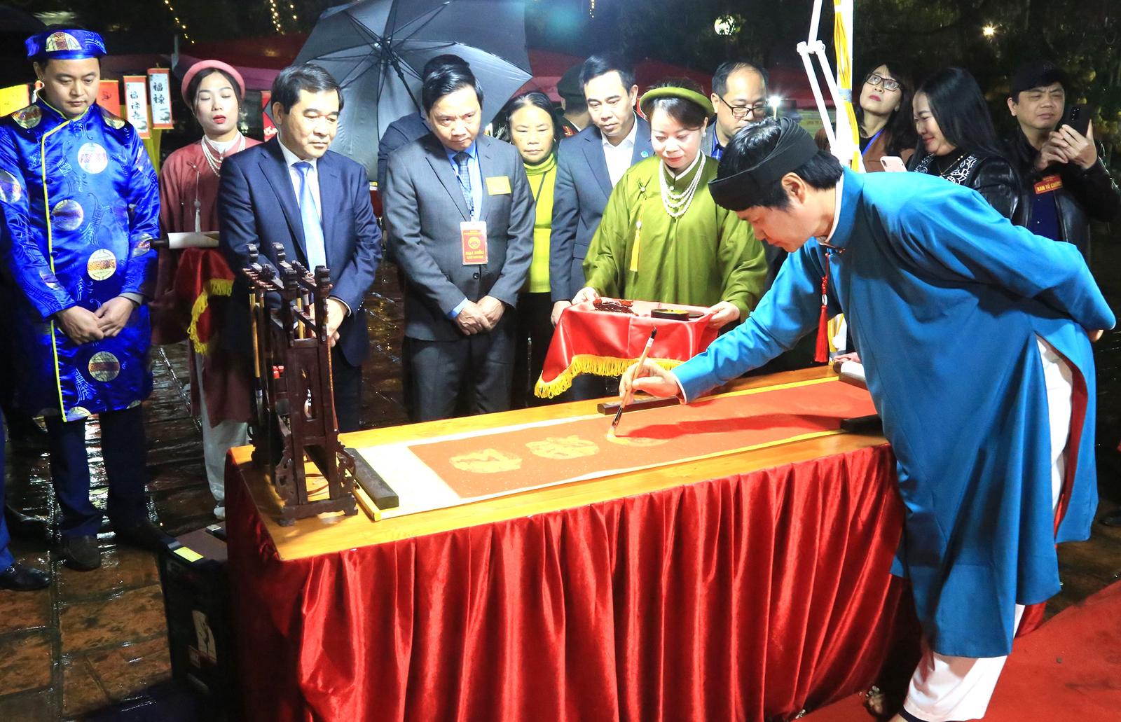 Trước lễ khai mạc, các đại biểu đã dự lễ bái yết tại sân tòa trung tế đền Vua và theo dõi màn trình diễn thư pháp 2 câu thơ của vua Trần Nhân Tông: "Xã tắc lưỡng hồi lao thạch mã/Sơn hà thiên cổ điện kim âu".
