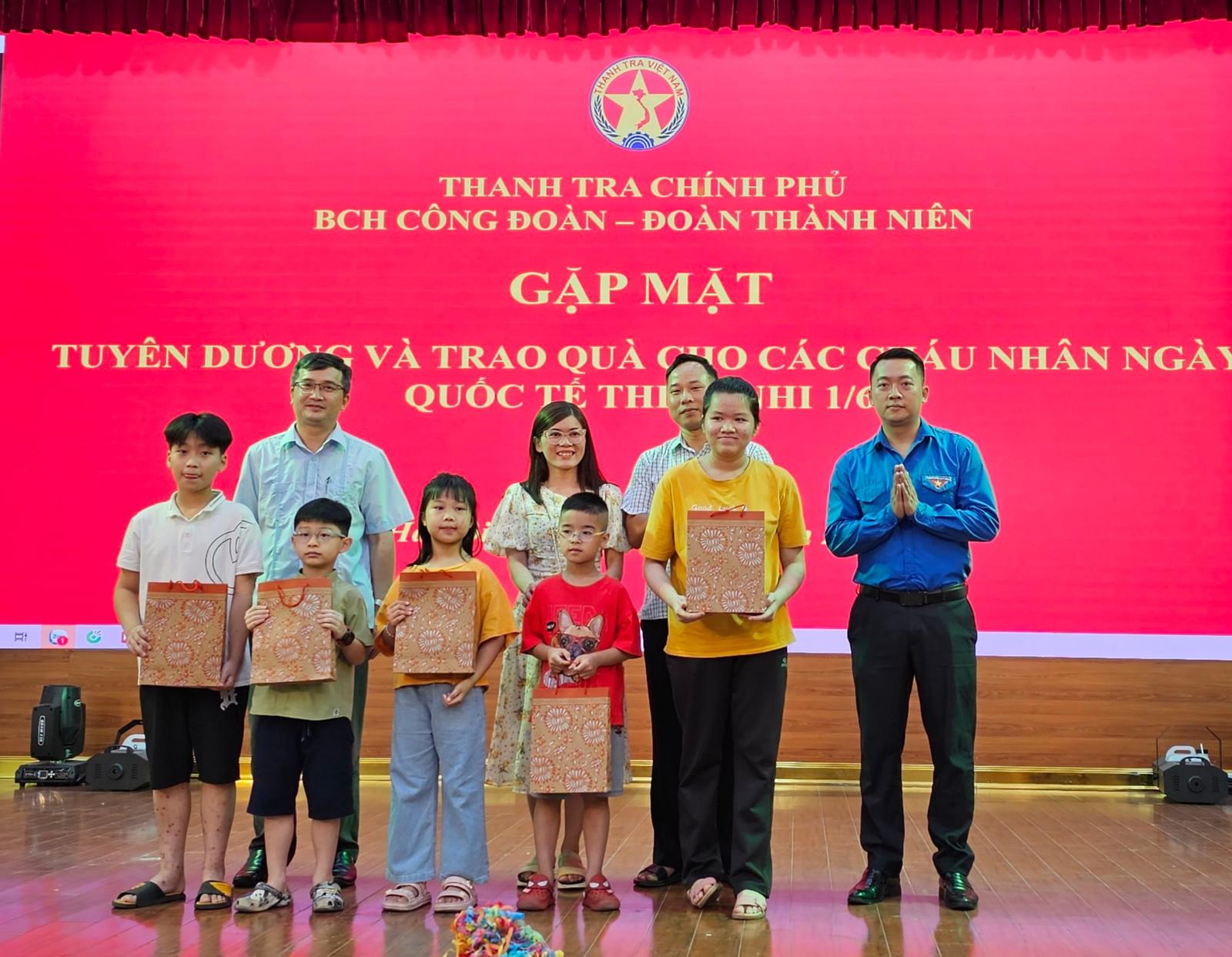 (Thanh tra) - Nhân Ngày Quốc tế thiếu nhi (1/6), Ban Chấp hành Công đoàn Thanh tra Chính phủ đã phối hợp với Ban Chấp hành Đoàn Thanh niên Cơ quan tổ chức buổi gặp mặt các cháu thiếu niên, nhi đồng là con của cán bộ, công chức, viên chức Cơ quan Thanh tra Chính phủ, nhằm biểu dương và động viên các con đã có nhiều thành tích trong năm học vừa qua.