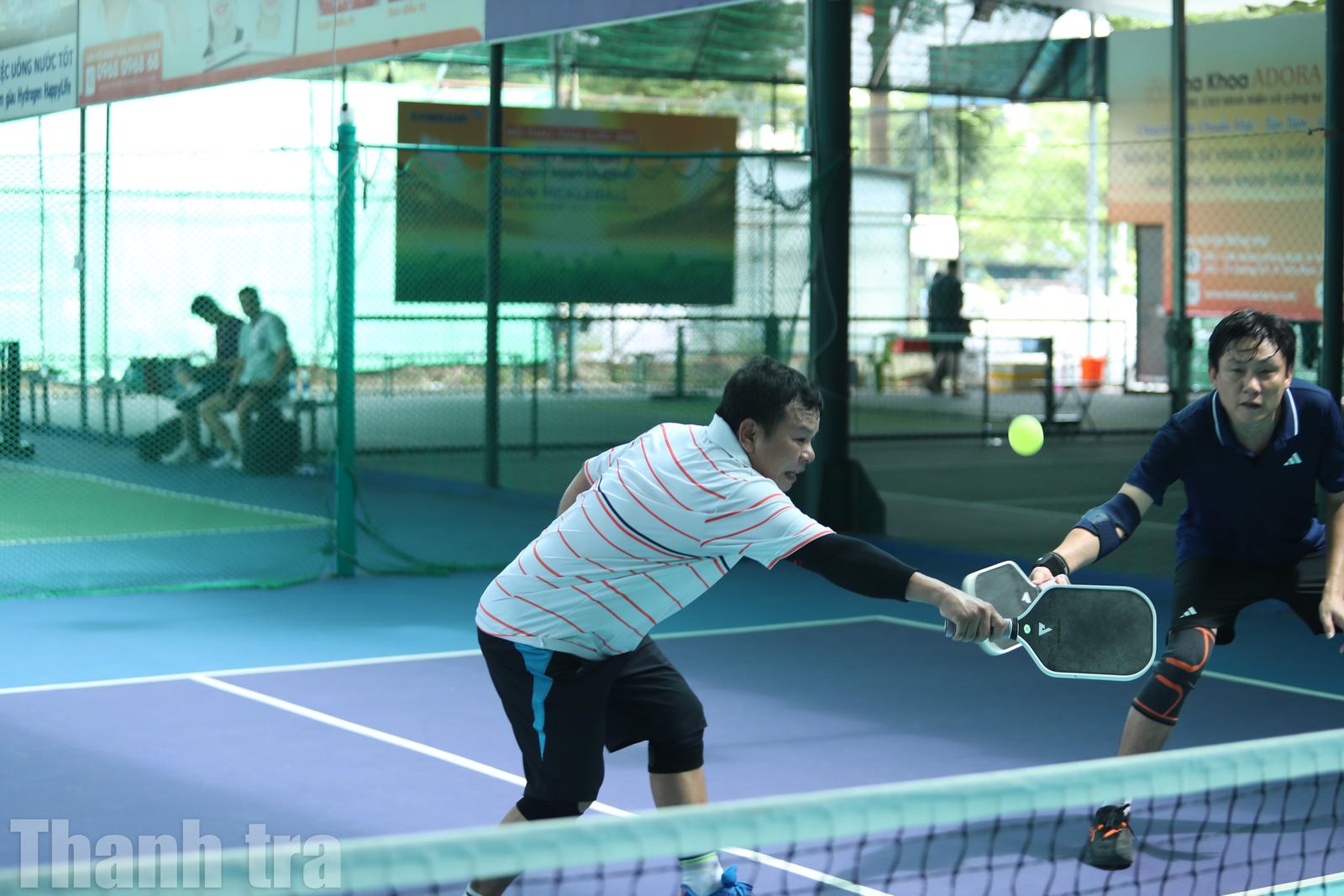 Ở môn thi đấu Pickleball đòi hỏi sự dẻo dai, sức bền và di chuyển nhanh, các vận động viên đều cố gắng hết mình. Ảnh: Hoài Nghĩa
