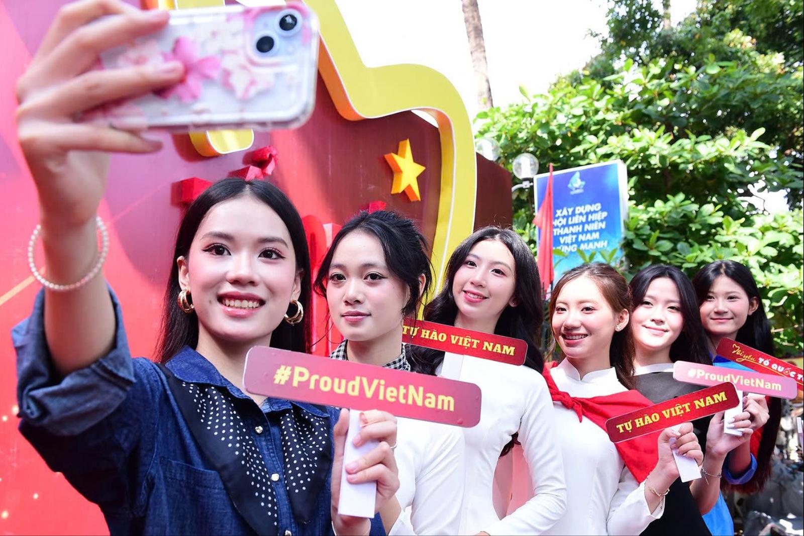 Đoàn viên thanh niên chụp ảnh check-in hưởng ứng Chiến dịch truyền thông. Ảnh: Xuân Tùng