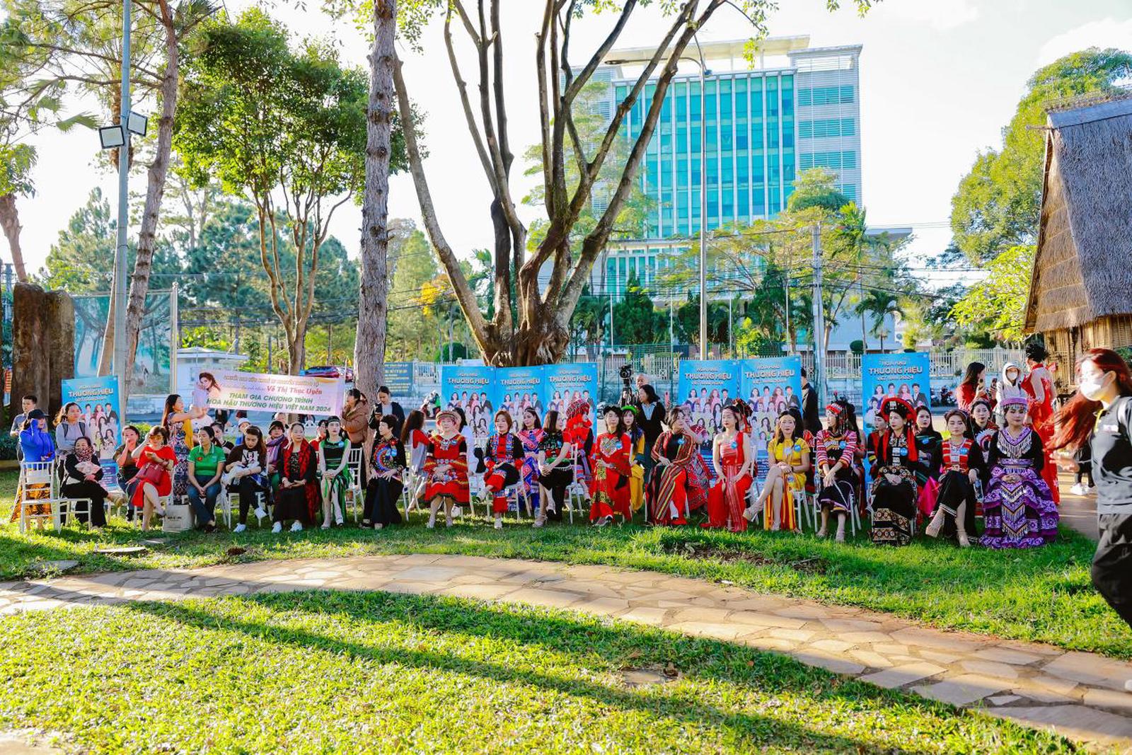 Ban Tổ chức cùng các thí sinh Hoa hậu Thương hiệu Việt Nam 2024 trình diễn trang phục dân tộc đến từ nhà tài trợ trang phục Thiên Di