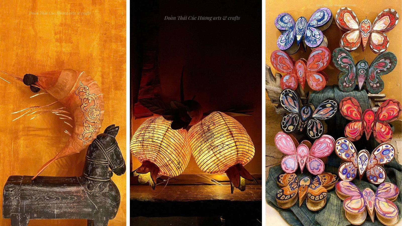 Một trong những cột mốc quan trọng trong hành trình sáng tạo của Đoàn Thái Cúc Hương là triển lãm “Lãm - Đèn Trung thu giấy dó cổ truyền Việt Nam”, diễn ra tại Hà Nội vào tháng 9 năm 2025. Hơn 80 mẫu đèn được trưng bày, từ cá chép hóa rồng, bươm bướm, quả lựu, bọ ngựa… cho đến những biến tấu mang hơi thở đương đại. Đây là dự án Hương ấp ủ suốt ba năm và dành trọn một năm để hoàn thiện.