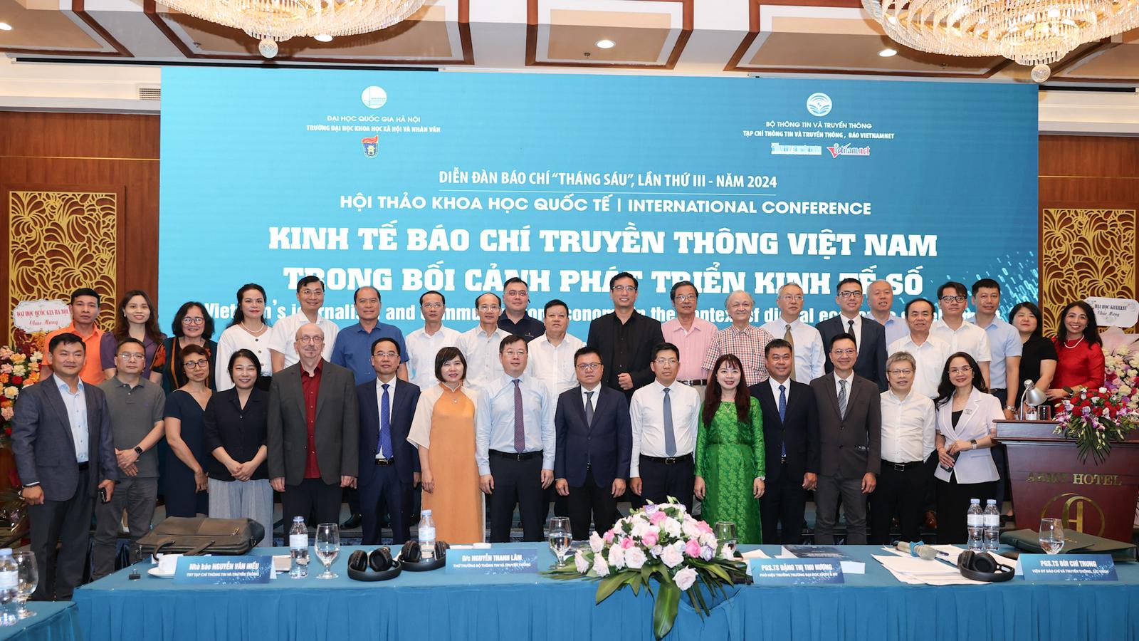 Ban Tổ chức và các học giả tham gia Hội thảo quốc tế về kinh tế báo chí