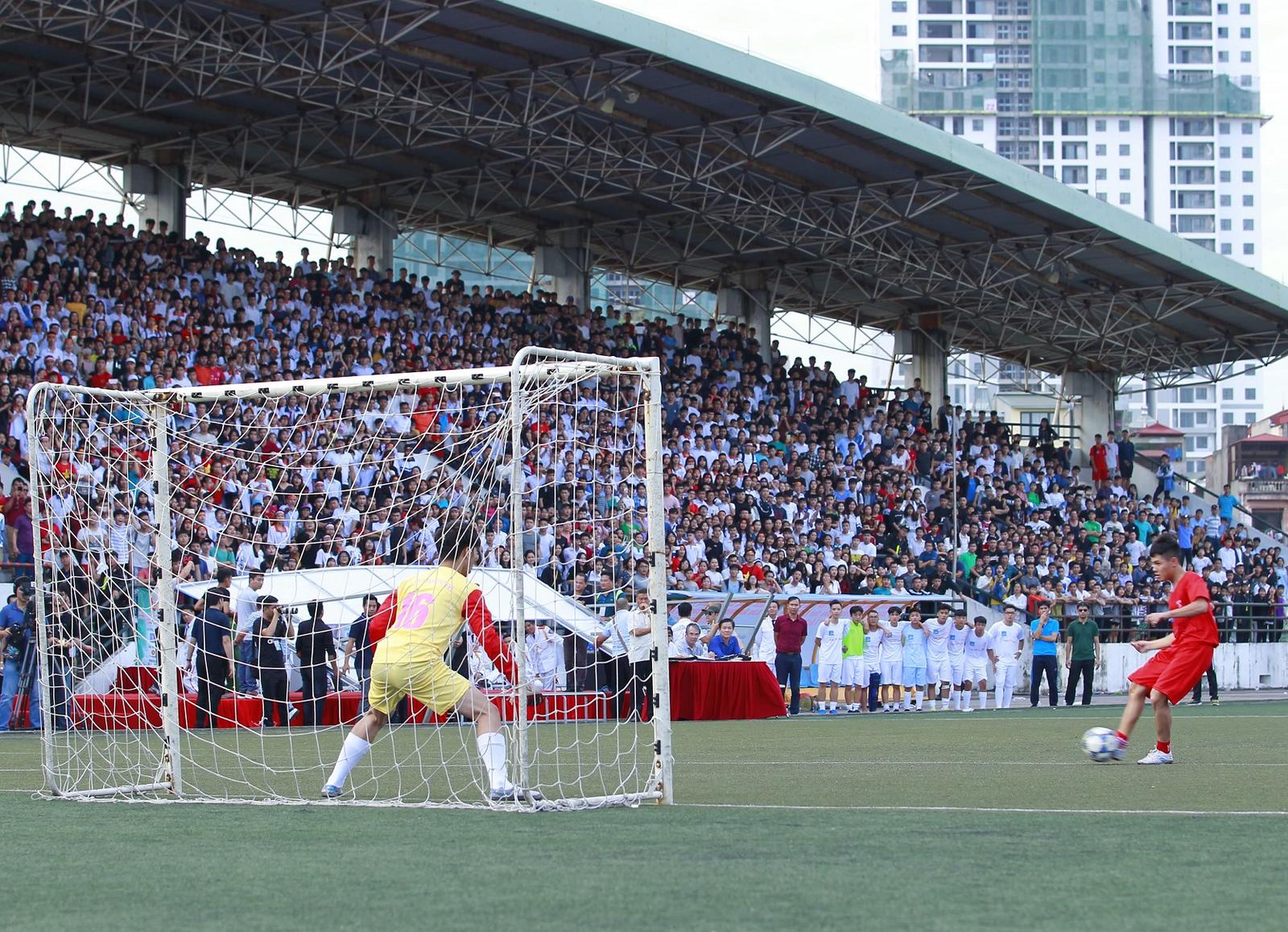 Những pha đi bóng ngoạn mục của các cầu thủ trong trận chung kết giữa trường THPT Trương Định và THPT Phùng Khắc Khoan đã khiến hơn 5.000 cổ động viên liên tục trải qua cảm xúc vỡ òa...