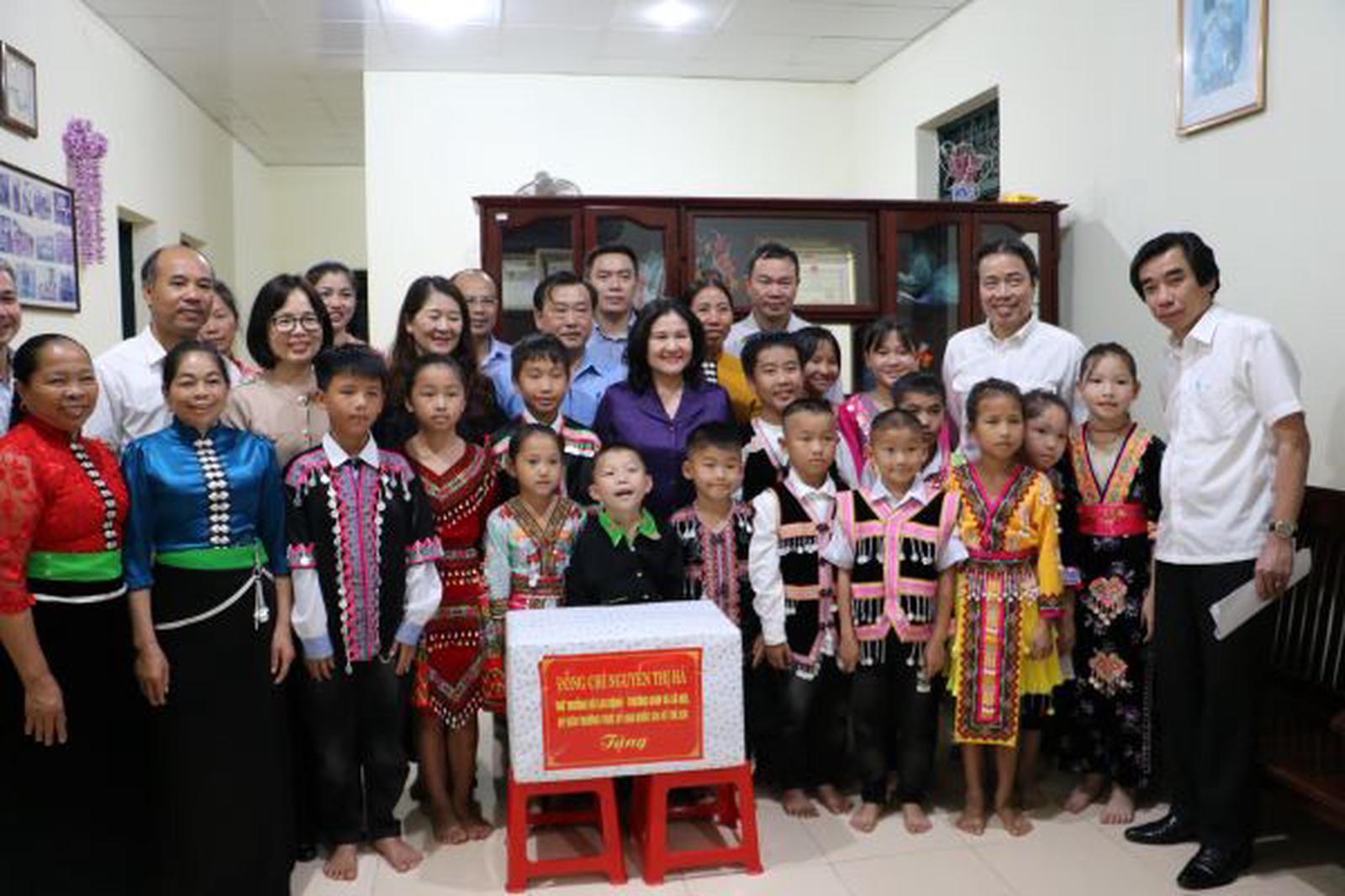 Đoàn đã đến thăm, tặng quà cho trẻ em tại Làng trẻ em SOS Điện Biên Phủ và Cơ sở bảo trợ xã hội tổng hợp tỉnh Điện Biên. Tại các điểm đến thăm, tặng quà, Thứ trưởng Nguyễn Thị Hà ân cần thăm hỏi, động viên, chúc các cháu luôn mạnh khỏe, chăm ngoan, xứng đáng là cháu ngoan Bác Hồ.
