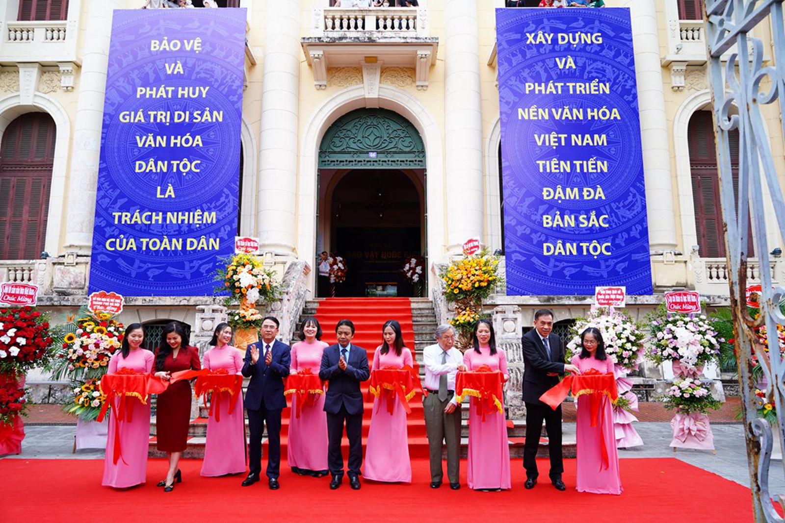 Các đại biểu tham dự cắt băng khai mạc và thăm quan các bảo vật trưng bày. Ảnh: KT