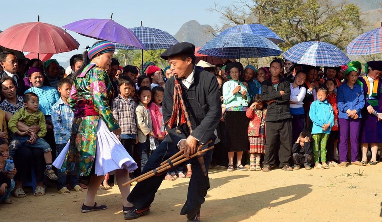 Biểu diễn khèn và hát múa trong một lễ hội Xuân của người vùng cao Hà Giang. Ảnh: NH