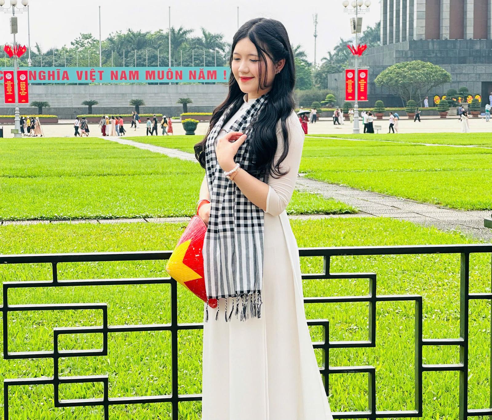 Bạn Nguyễn Quỳnh Trang (Hà Nội) bày tỏ: “Tình yêu nước với mình không chỉ là xúc động khi nghe bài "Như có Bác trong ngày đại thắng", mà còn là tìm hiểu thêm về các cuộc chiến tranh, để hiểu vì sao hôm nay mình được sống trong hòa bình". Ảnh: Nguyễn Nhài