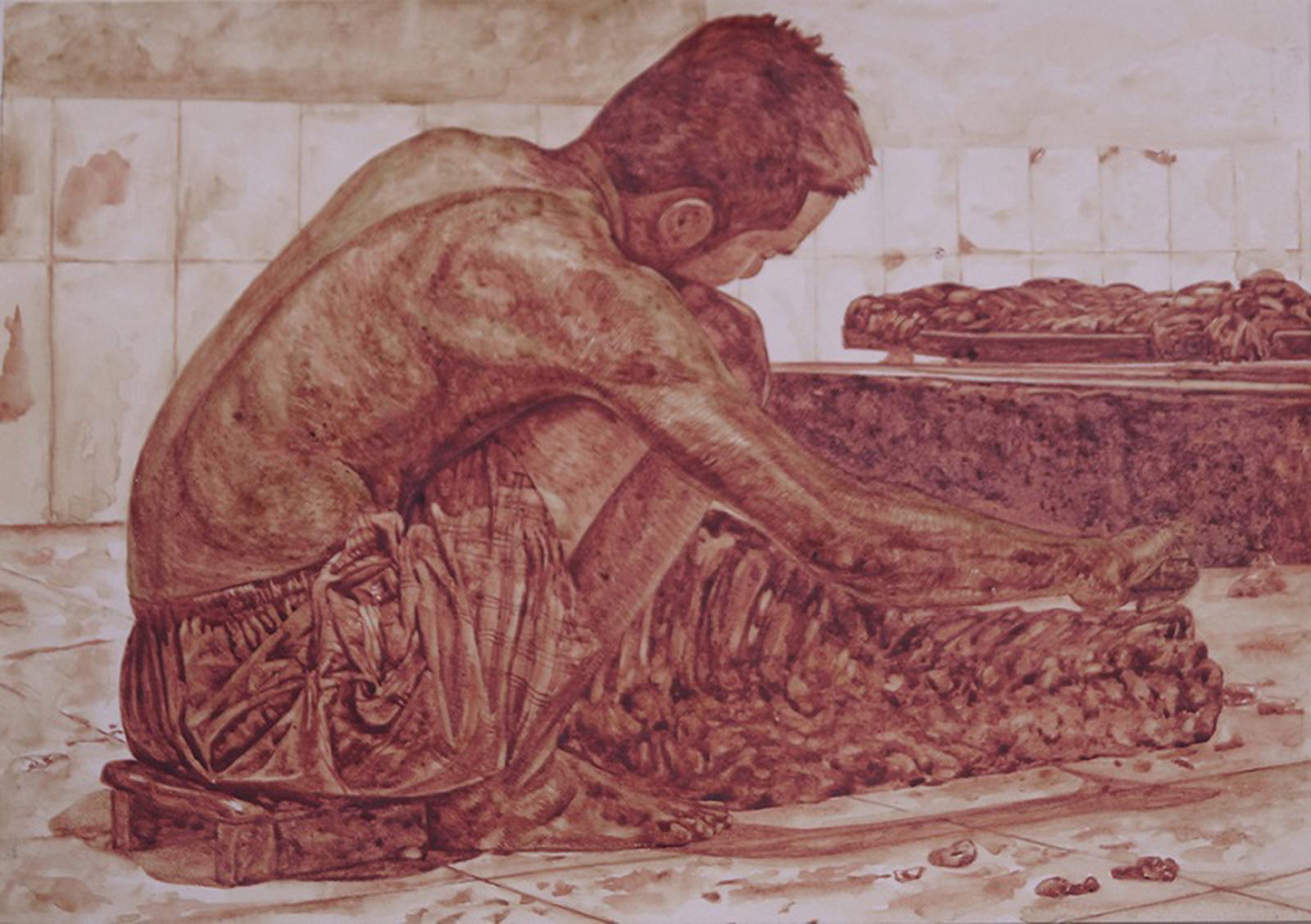Tác phẩm phác thảo “Lò mổ” đầy ấn tượng của tác giả Nguyễn Văn Đủ