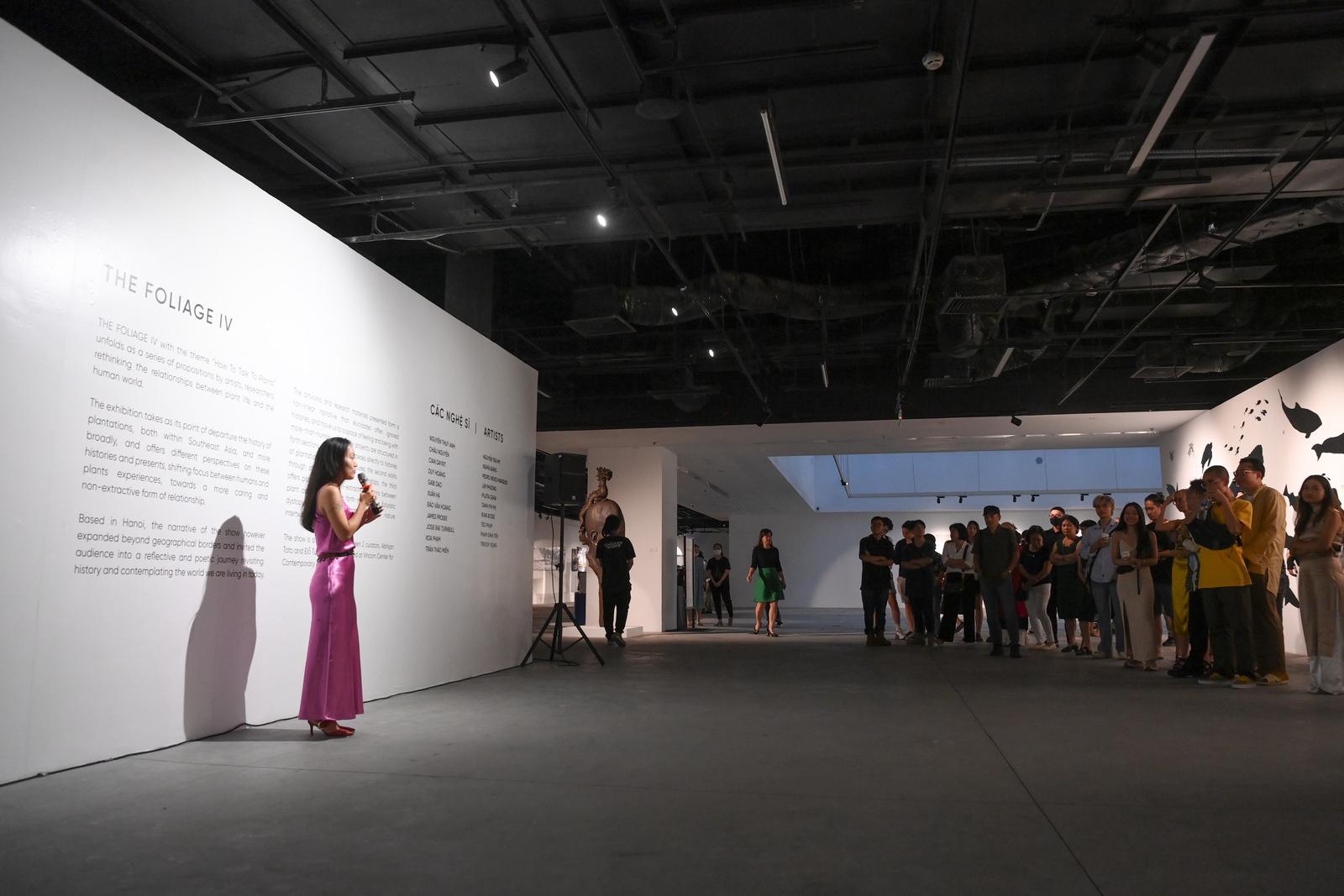 Hai nhà nghiên cứu nghệ thuật Đỗ Tường Linh và Abhijan Toto - đồng giám tuyển chia sẻ trong Lễ khai mạc Triển lãm Toả IV
