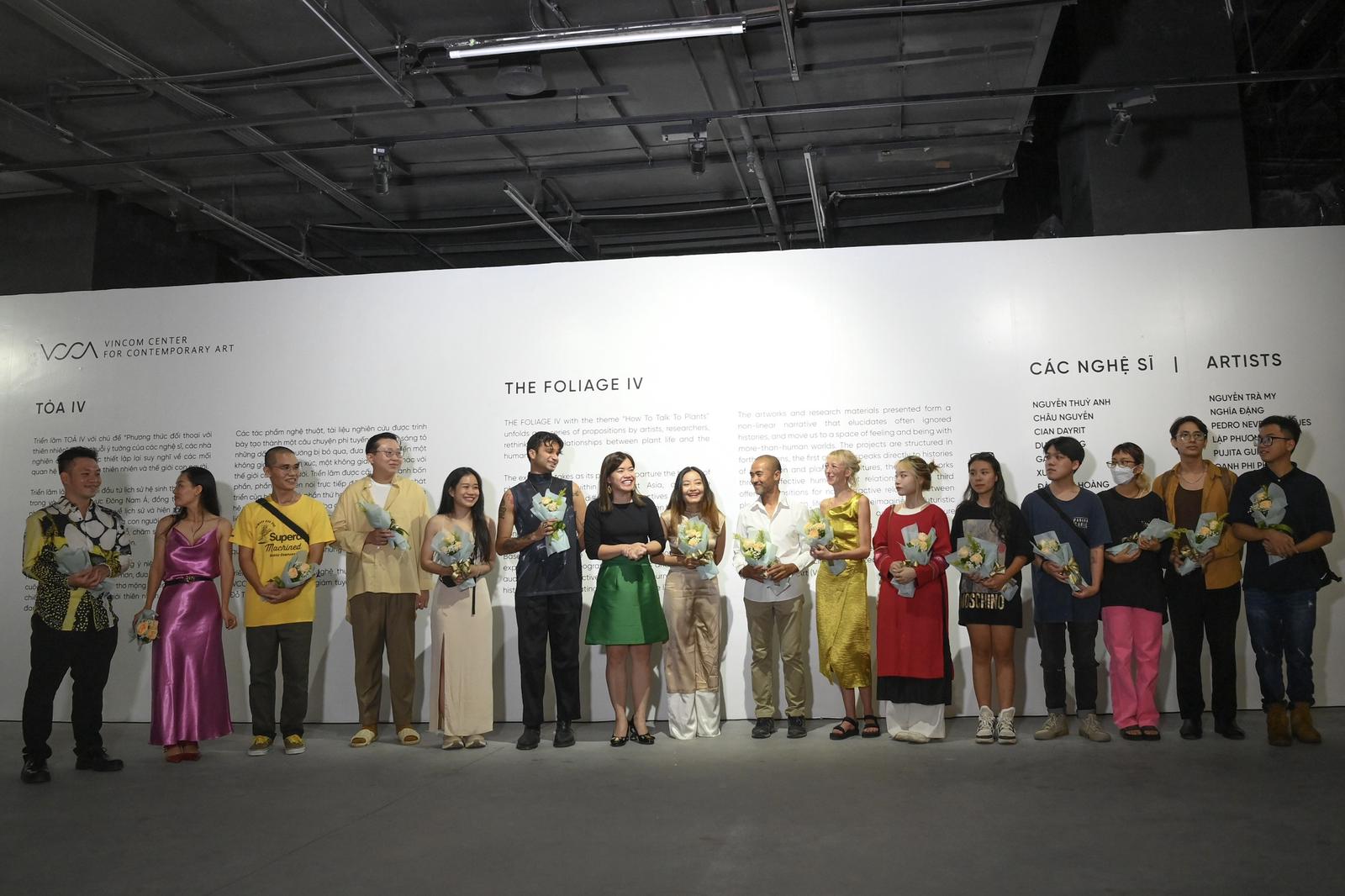 Đại diện VCCA tặng hoa cảm ơn giám tuyển và các nghệ sĩ tham gia Triển lãm Toả IV