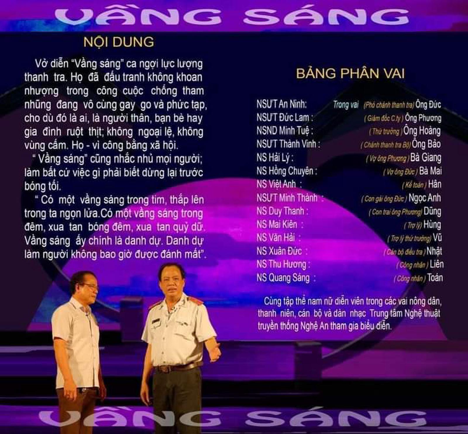 Vở kịch dân ca "Vầng sáng" của Trung tâm Nghệ thuật truyền thống Nghệ An tuyên truyền về ngành Thanh tra để laị nhiều cảm xúc cho khán giả. Ảnh: VHTT Nghệ An