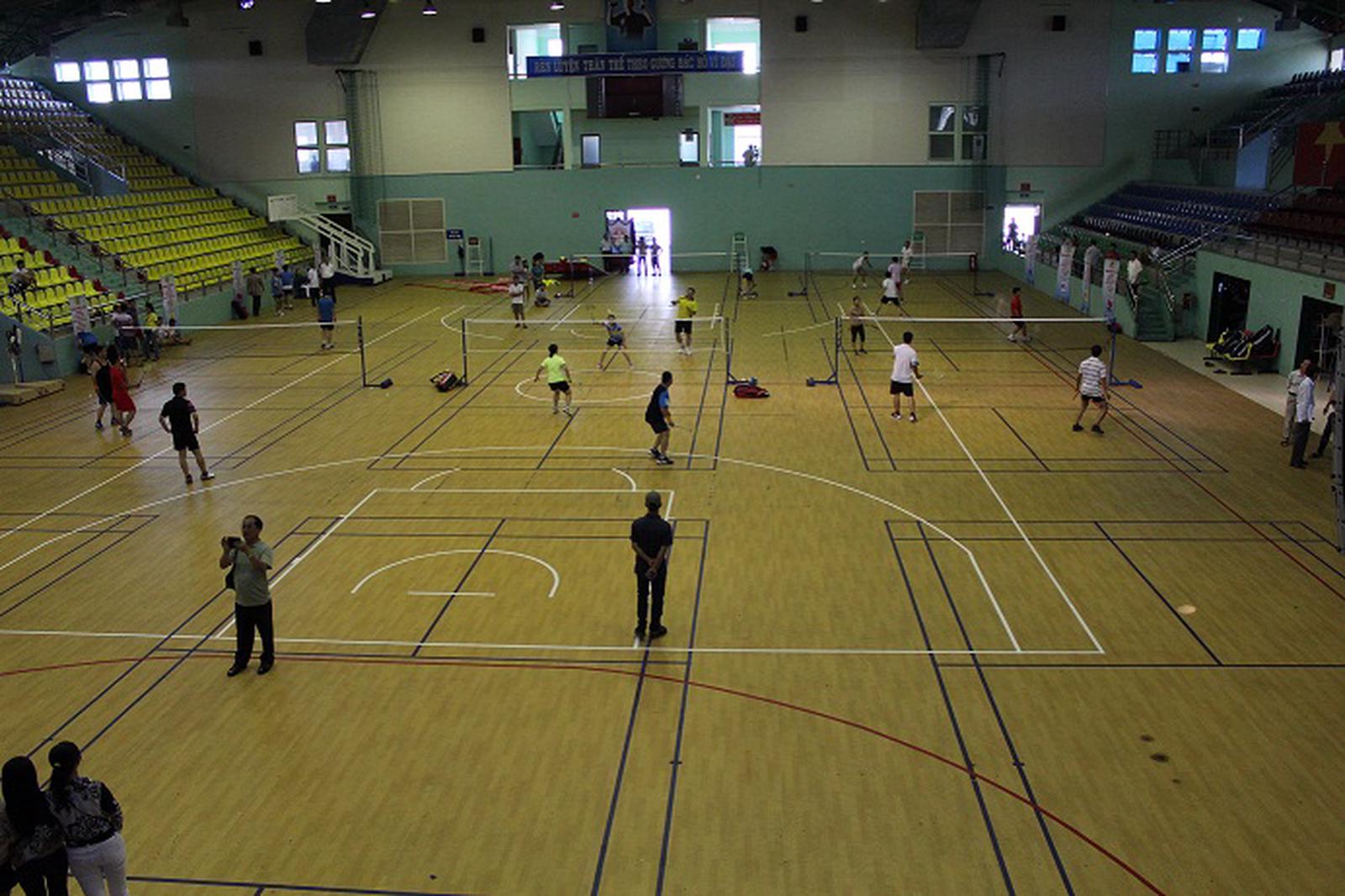 Các vận động viên tập luyện, làm quen sân bãi trước ngày thi đấu. Ảnh: Chu Giang Cảnh
