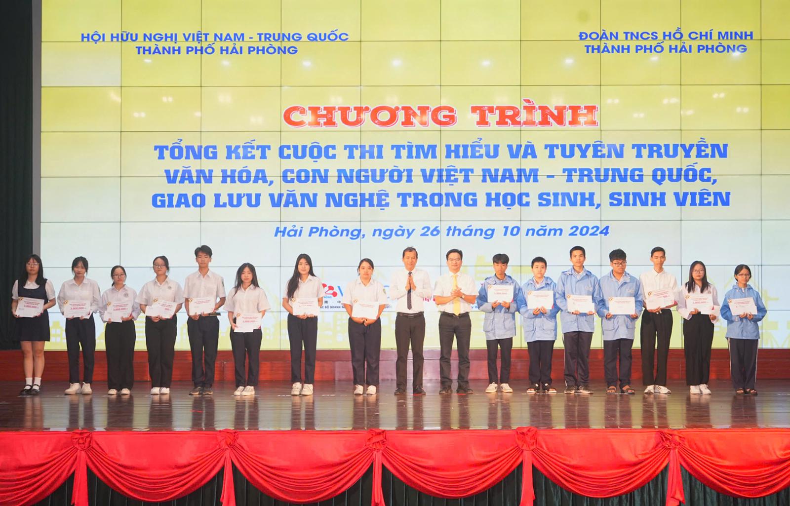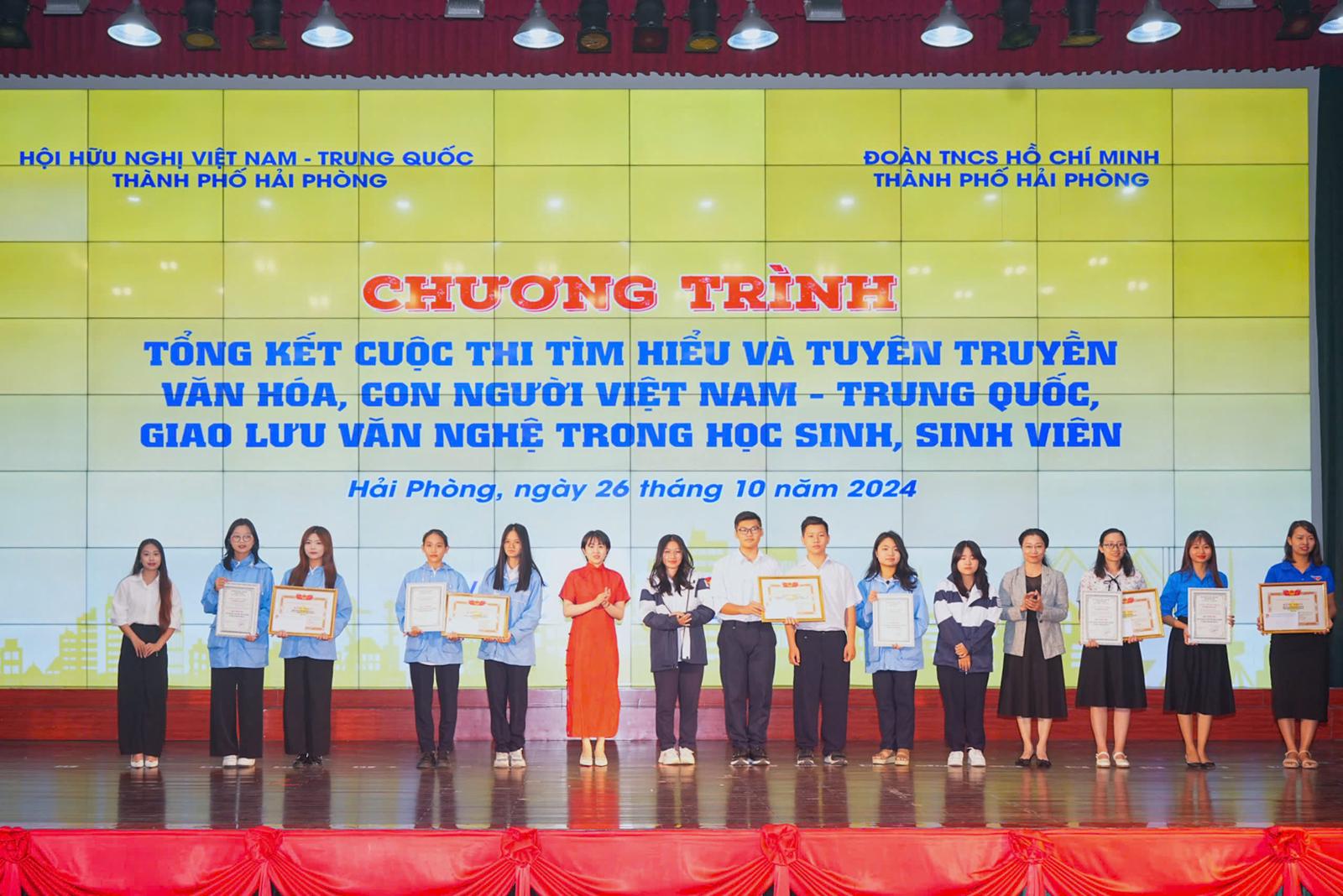 (Thanh tra) - Ngày 26/10, Trưởng Ban Tuyên giáo Thành uỷ Hải Phòng Đào Khánh Hà, Chủ tịch Hội hữu nghị Việt Nam - Trung Quốc thành phố Hải Phòng dự tổng kết Cuộc thi tìm hiểu và tuyên truyền về văn hóa, con người Việt Nam - Trung Quốc năm 2024 và giao lưu văn nghệ học sinh, sinh viên.