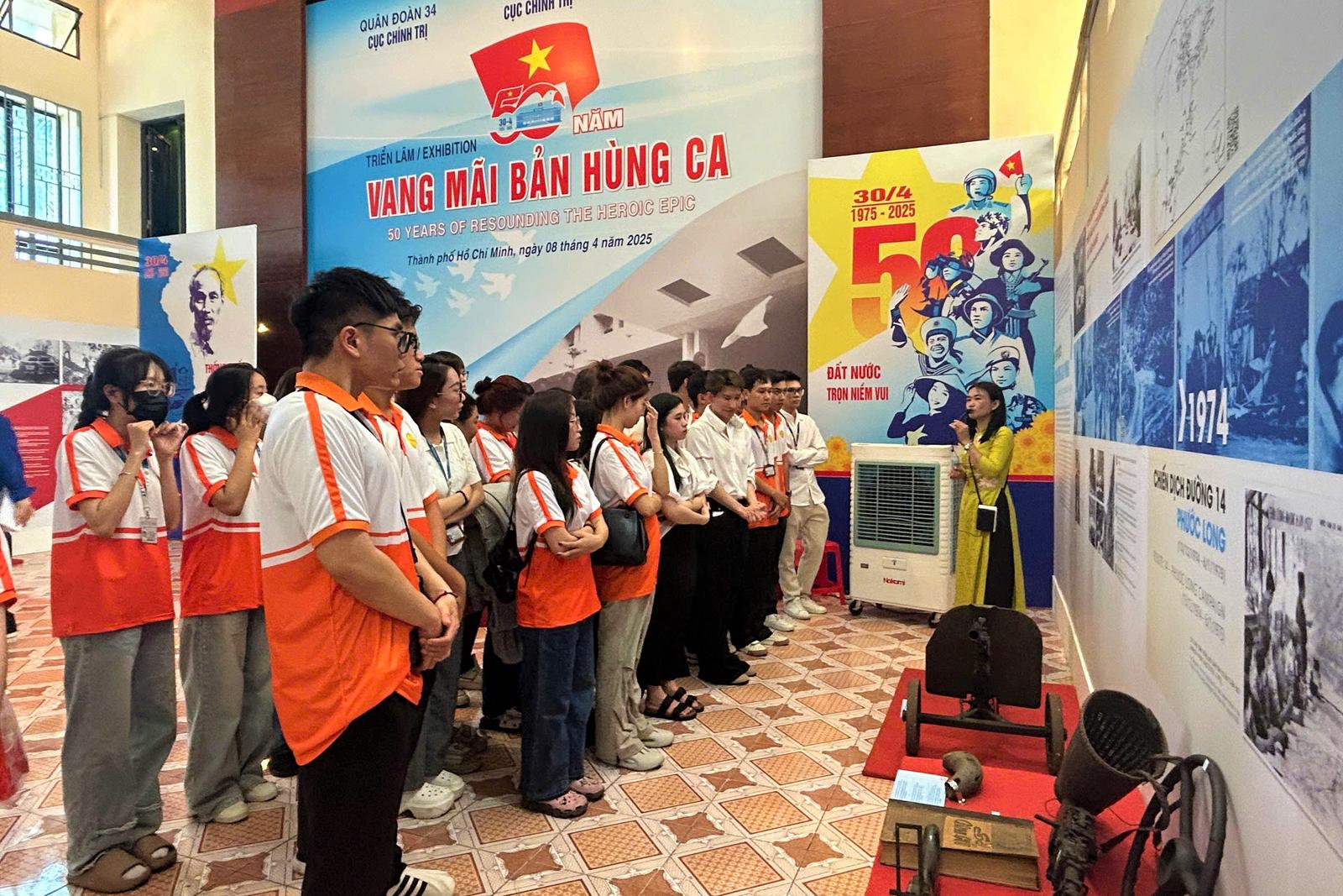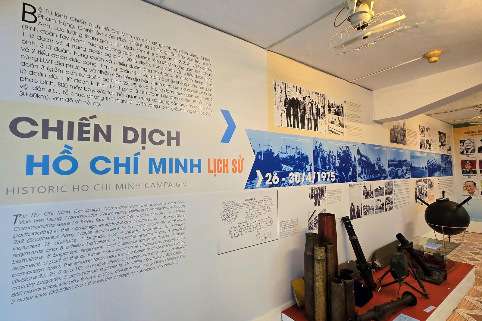 Triển lãm “50 năm vang mãi bản hùng ca” tại Bảo tàng Chiến dịch Hồ Chí Minh được Cục Chính trị Quân khu 7 phối hợp Cục Chính trị Quân đoàn 34, Sở Văn hóa và Thể thao Thành phố Hồ Chí Minh tổ chức. Ảnh: Chu Tuấn