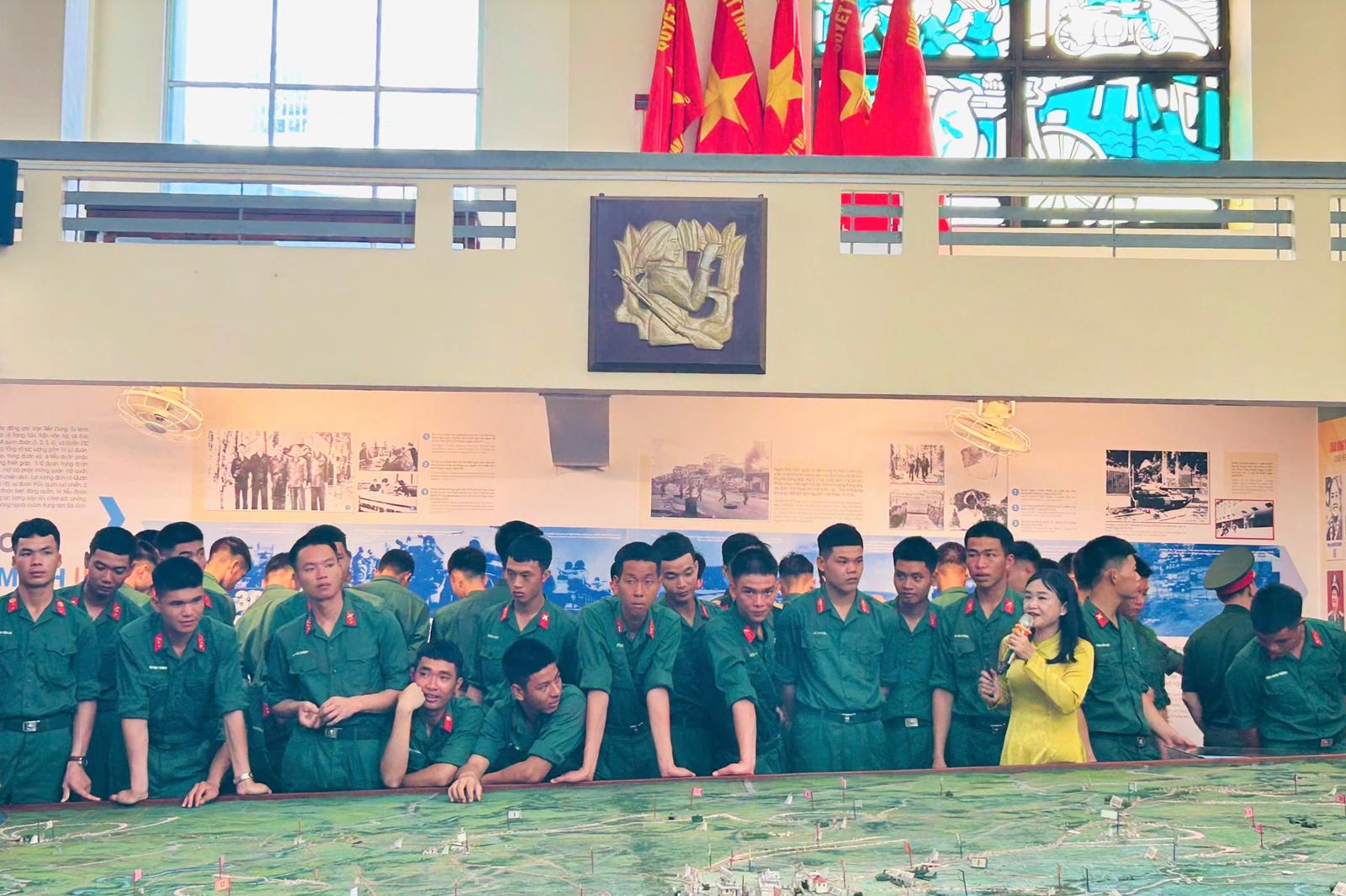Các cán bộ, chiến sĩ tham gia diễu binh diễu hành (A50) tham quan tại Bảo tàng. Ảnh: A.X